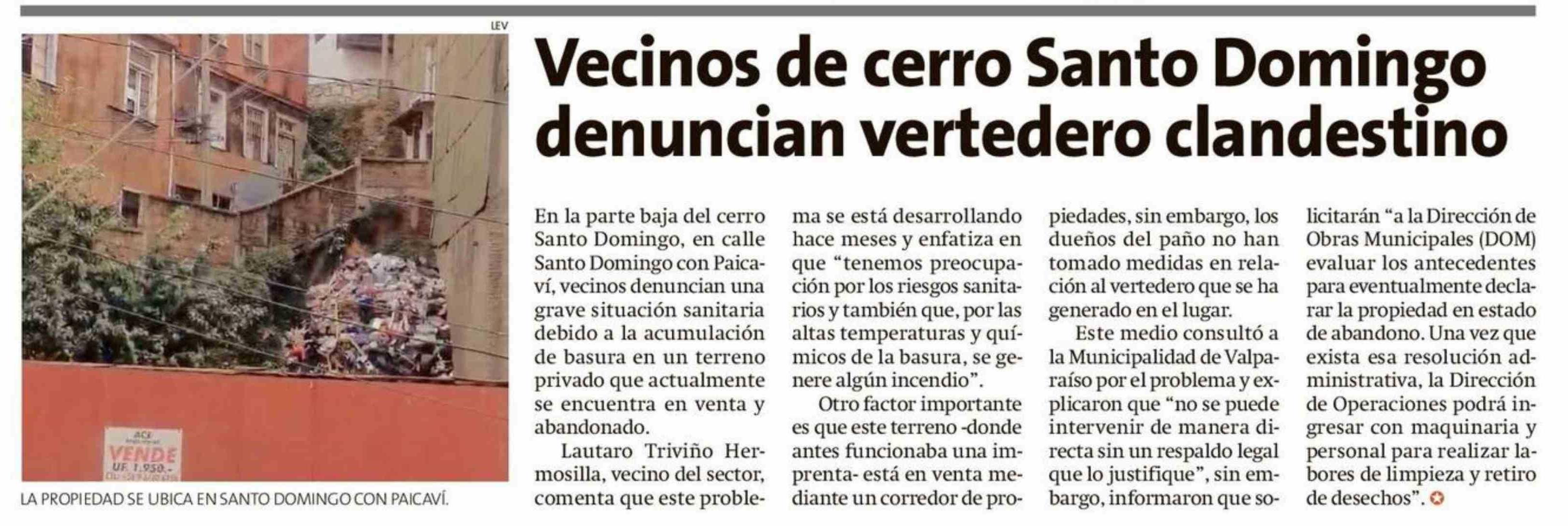 Vecinos de cerro Santo Domingo denuncian vertedero clandestino