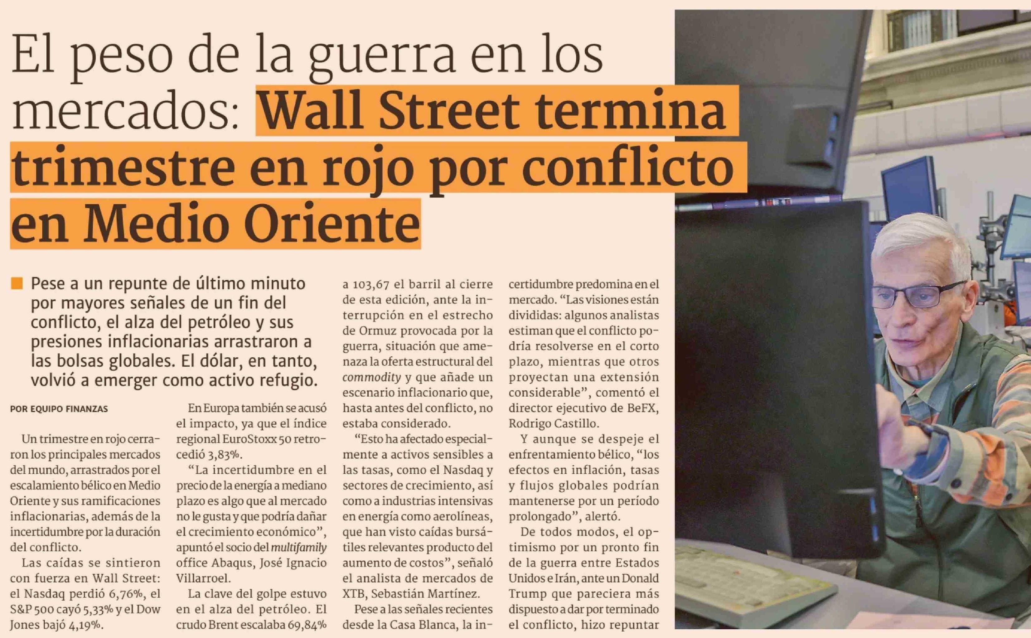 El peso de la guerra en los mercados: Wall Street termina trimestrte en rojo por conflicto en Medio Oriente