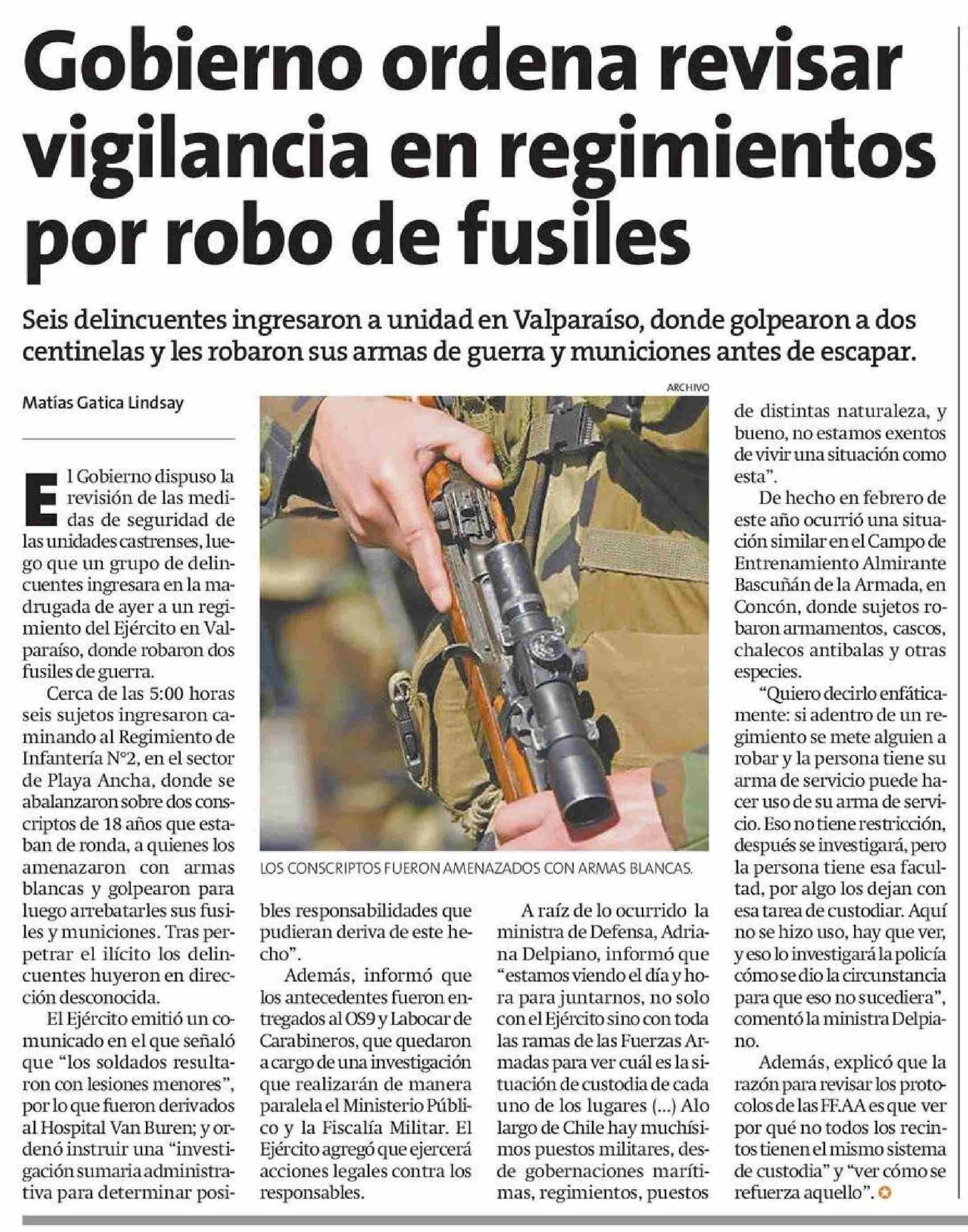 Gobierno ordena revisar vigilancia en regimientos por robo de fusiles