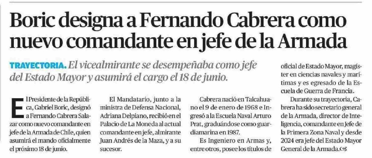 Boric designa a Fernando Cabrera como nuevo comandante en jefe de la Armada