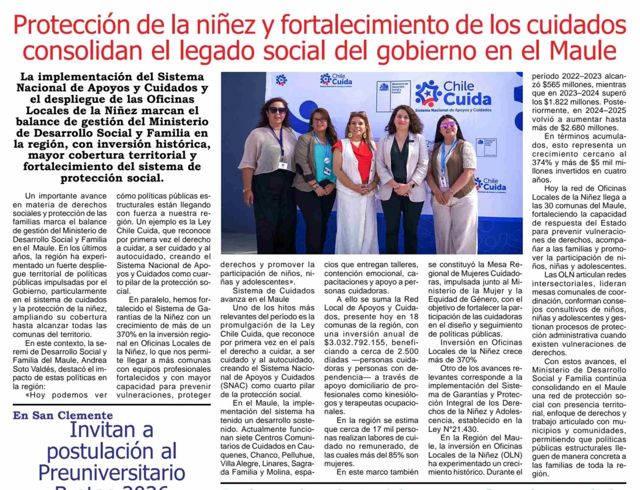 Protección de la niñez y fortalecimiento de los cuidados consolidan el legado social del gobierno en el Maule