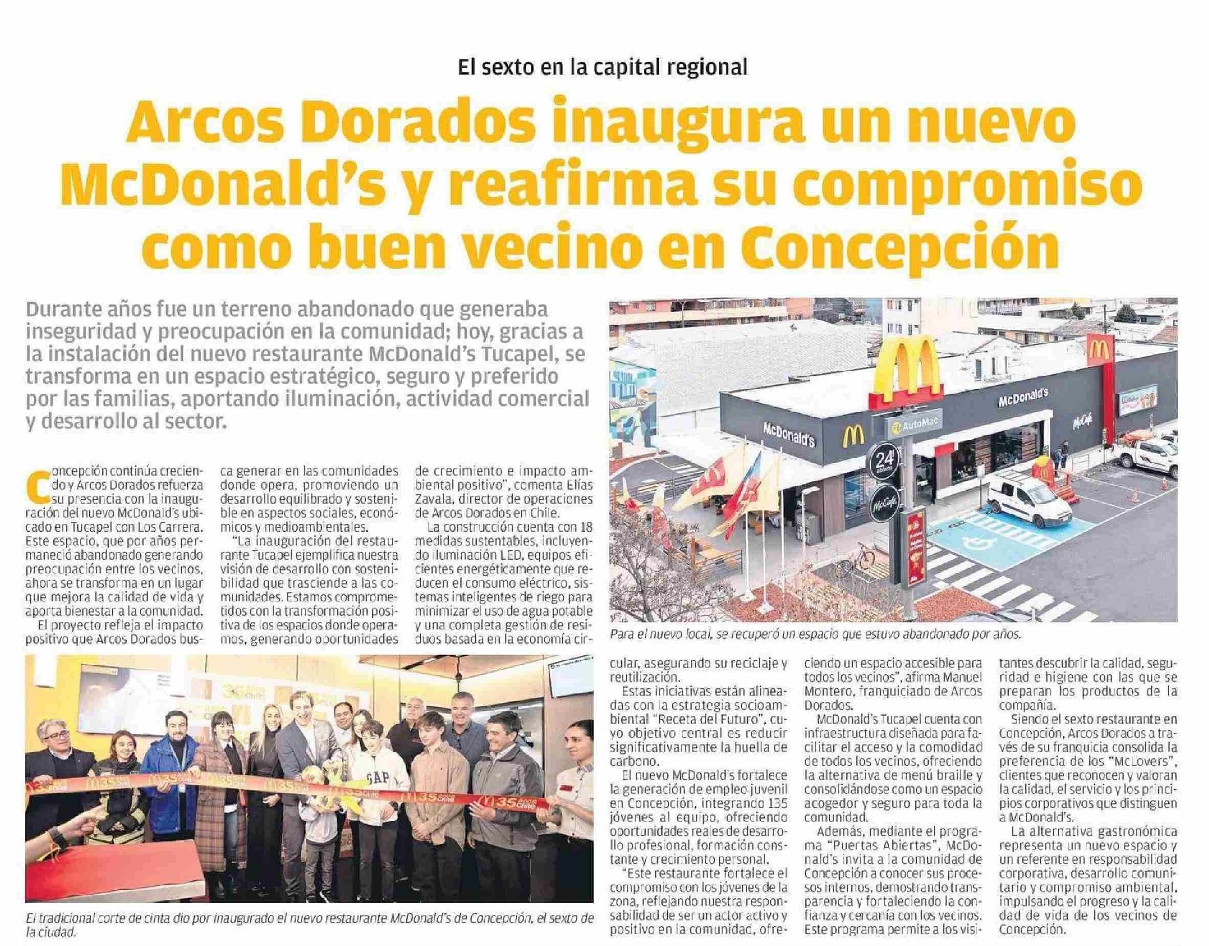 Título: Arcos Dorados inaugura un nuevo McDonald's y reafirma su compromiso como buen vecino en Concepción