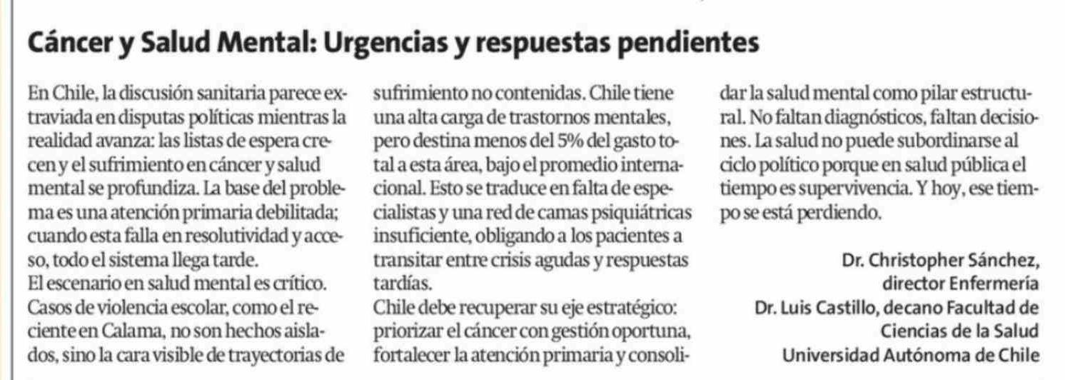 Cartas: Cáncer y Salud Mental: Urgencias y respuestas pendientes