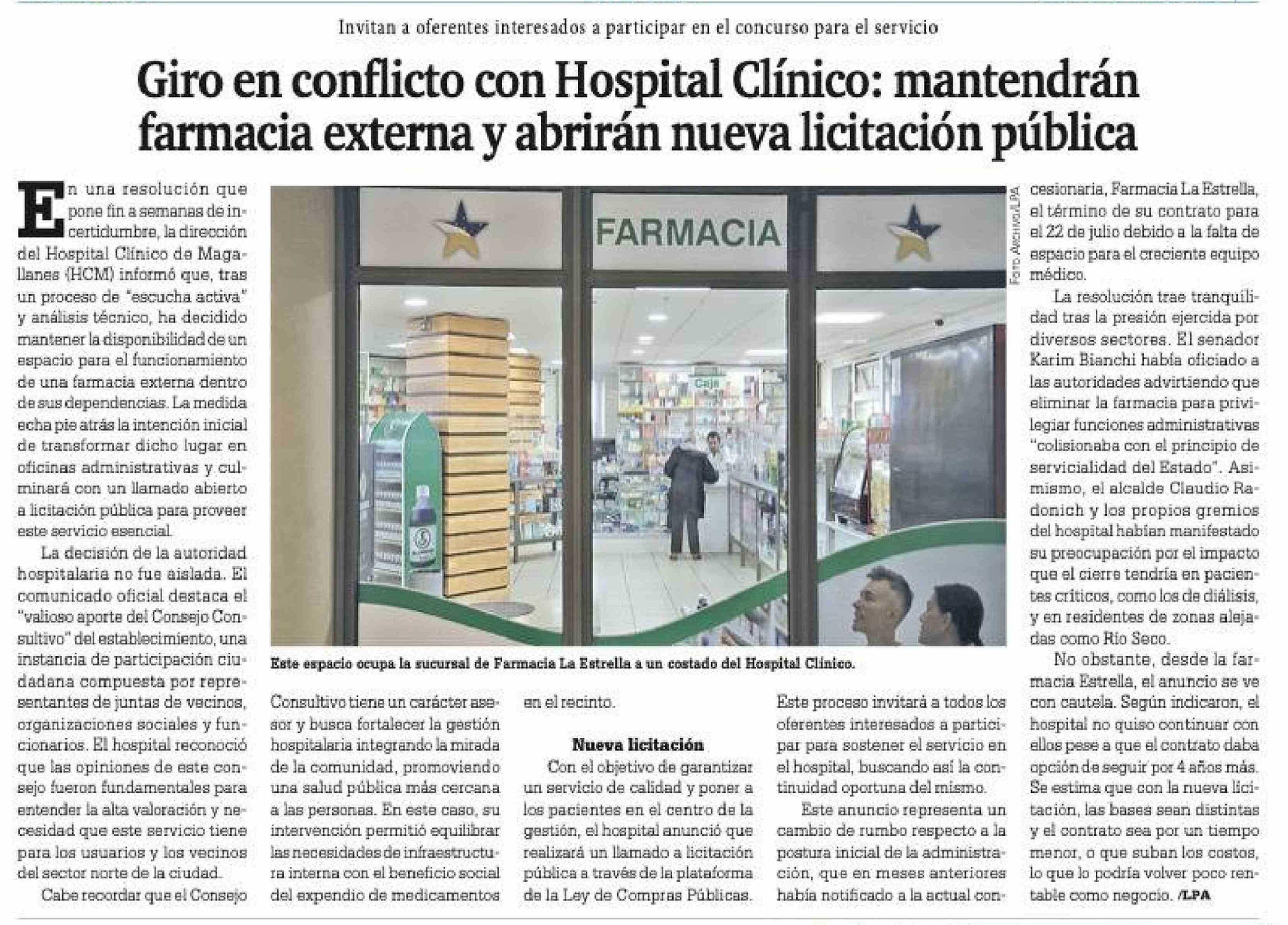 Título: Giro en conflicto con Hospital Clínico: mantendrán farmacia externa y abrirán nueva licitación pública
