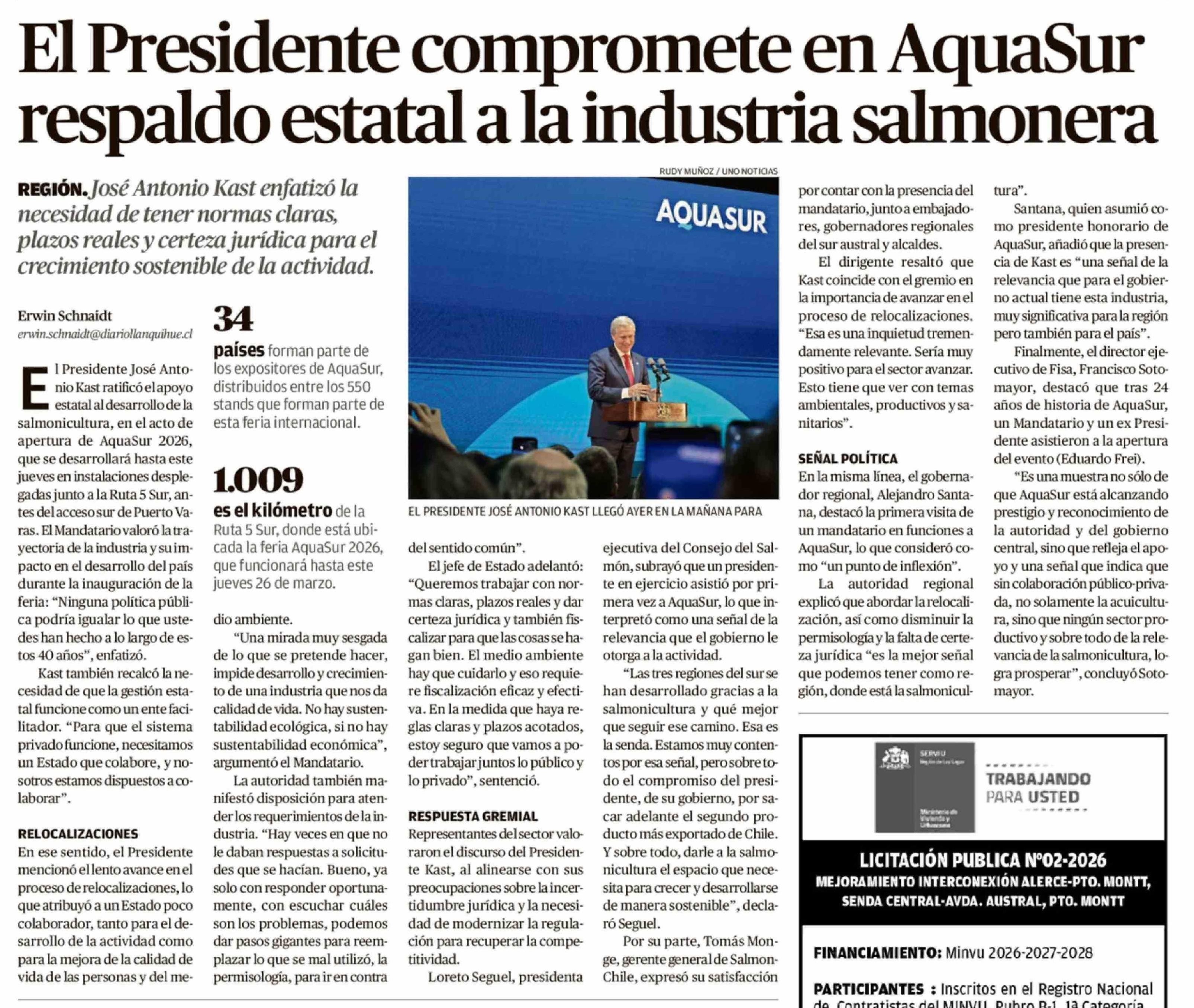 Título: El Presidente compromete en AquaSur respaldo estatal a la industria salmonera