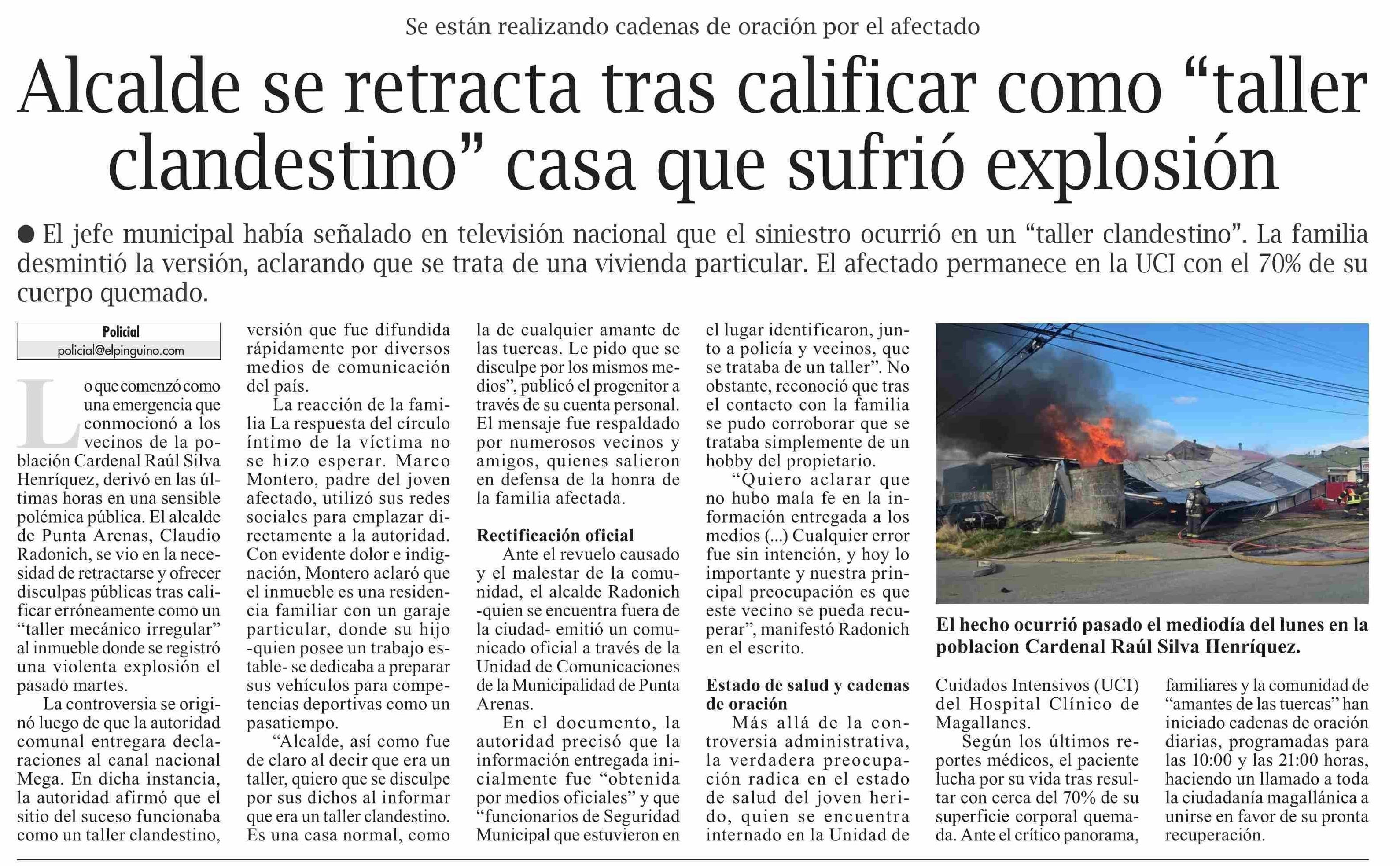 Alcalde se retracta tras calificar como “taller clandestino” casa que sufrió explosión