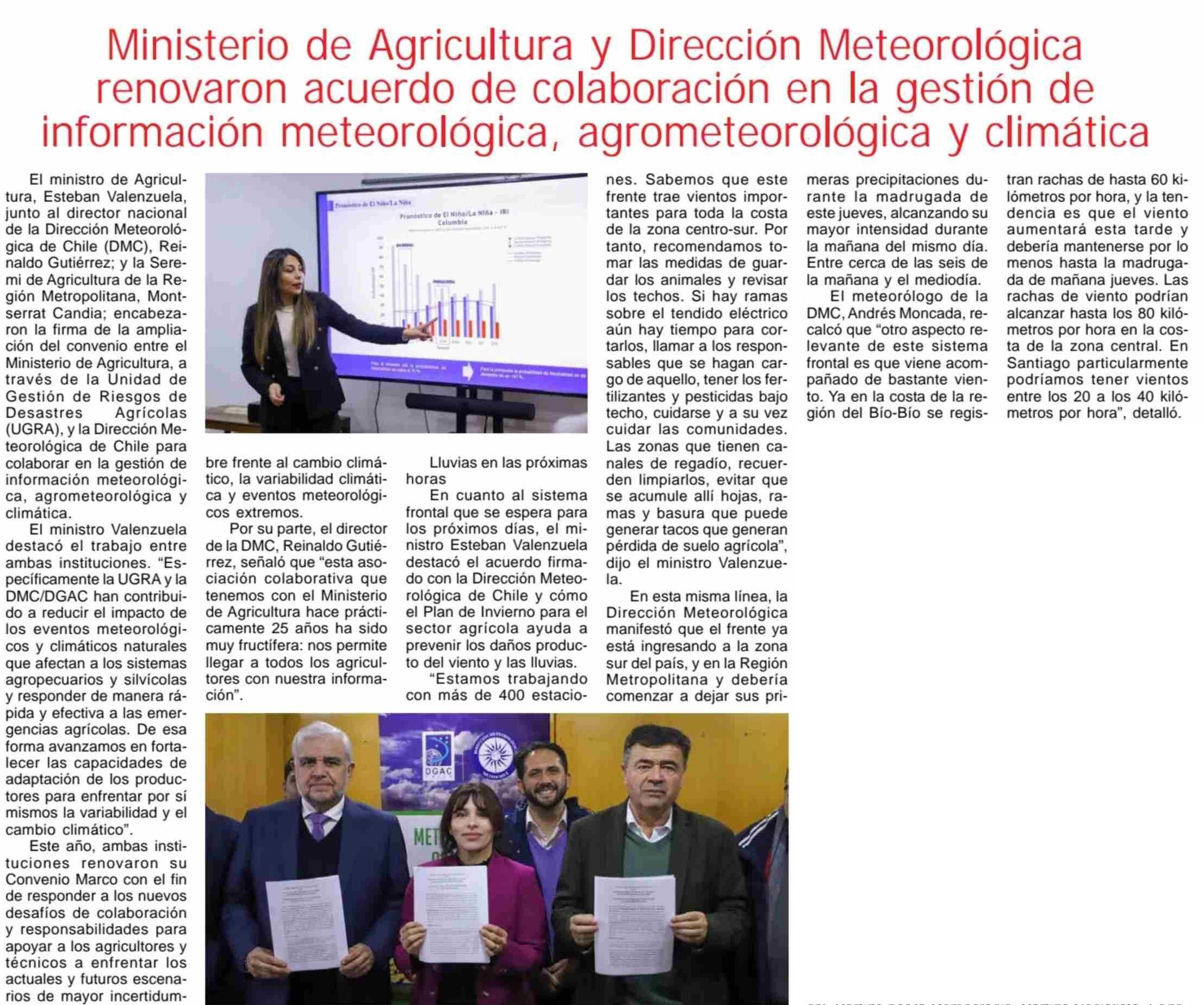 Ministerio de Agricultura y Dirección Meteorológica renovaron acuerdo de colaboración en la gestión de información meteorológica, agrometeorológica y climática