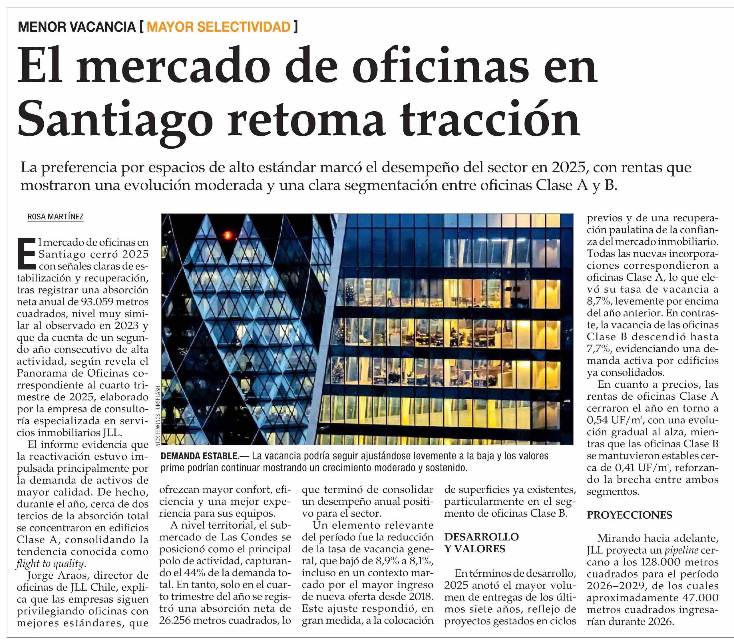 El mercado de oficinas en Santiago retoma tracción