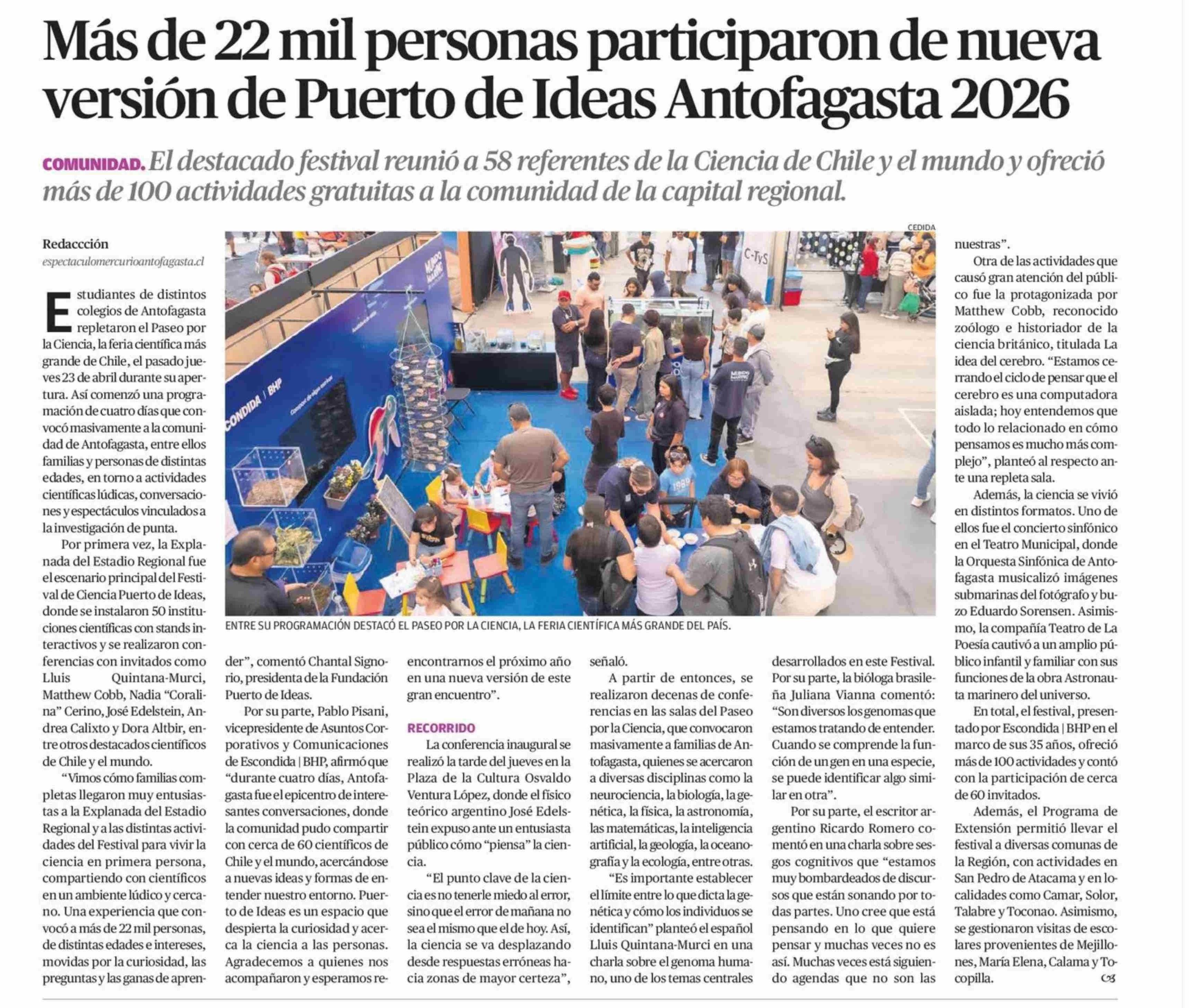 Más de 22 mil personas participaron de nueva versión de Puerto de Ideas Antofagasta 2026