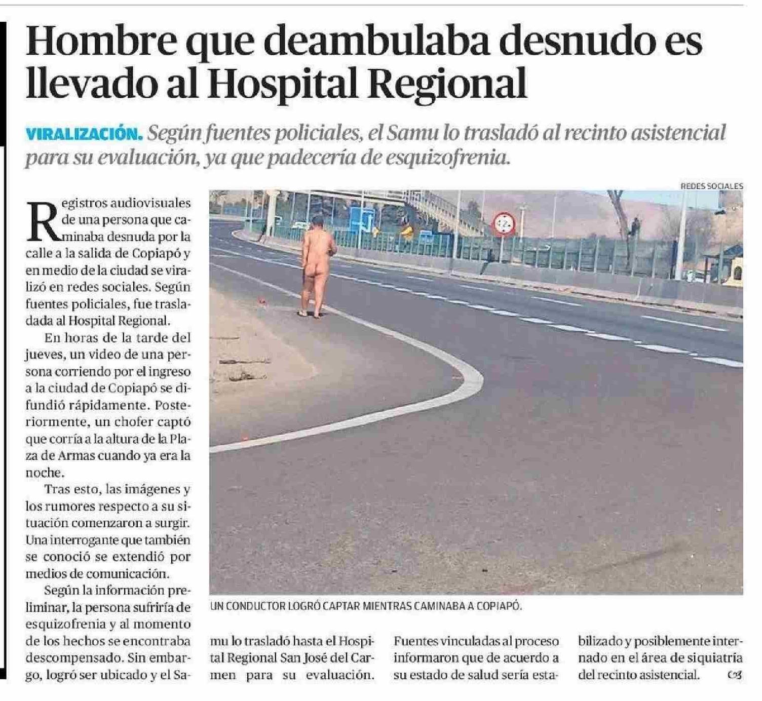 Hombre que deambulaba desnudo es llevado al Hospital Regional