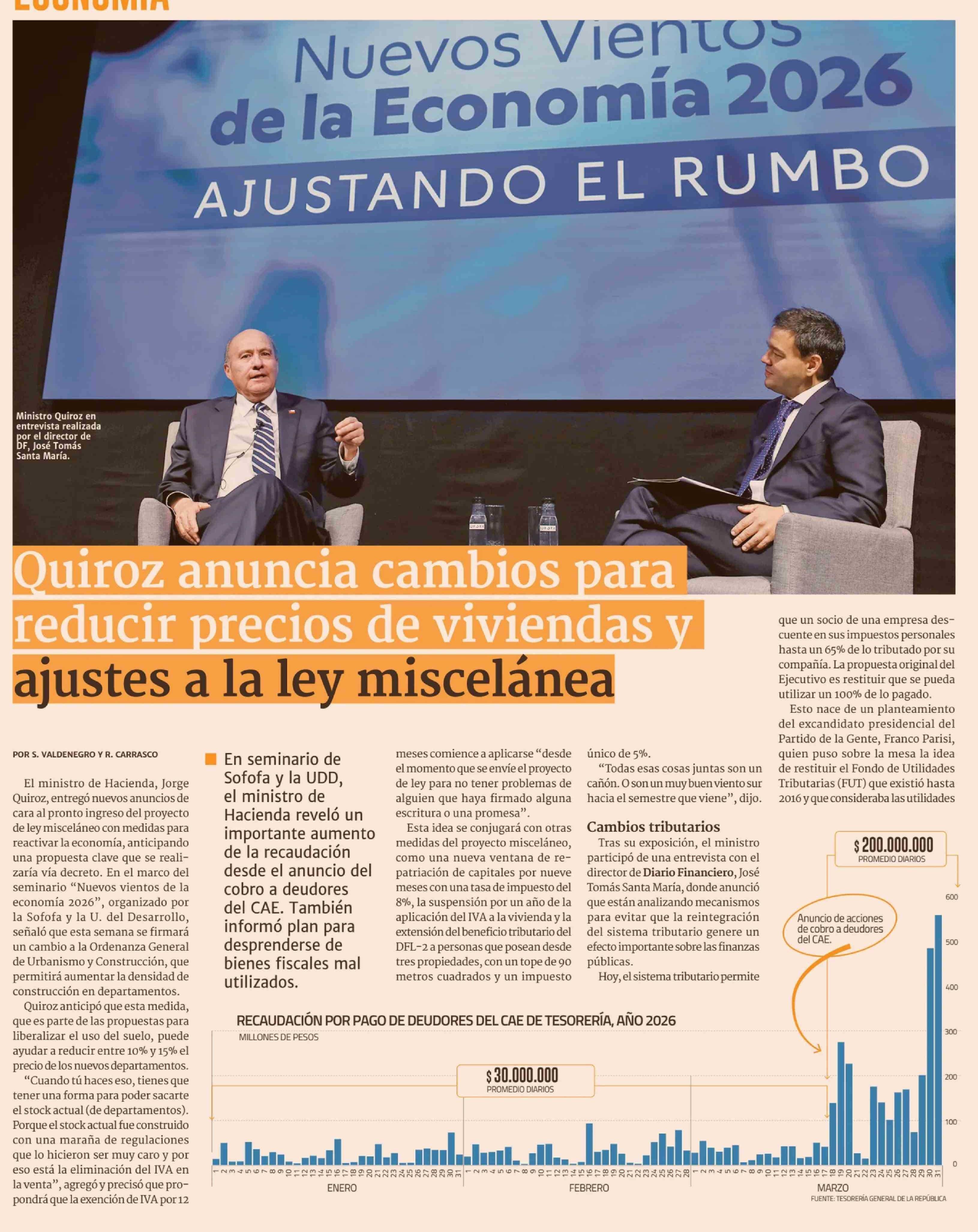 Quiroz anuncia cambios para reducir precios de viviendas y ajustes a la ley miscelánea