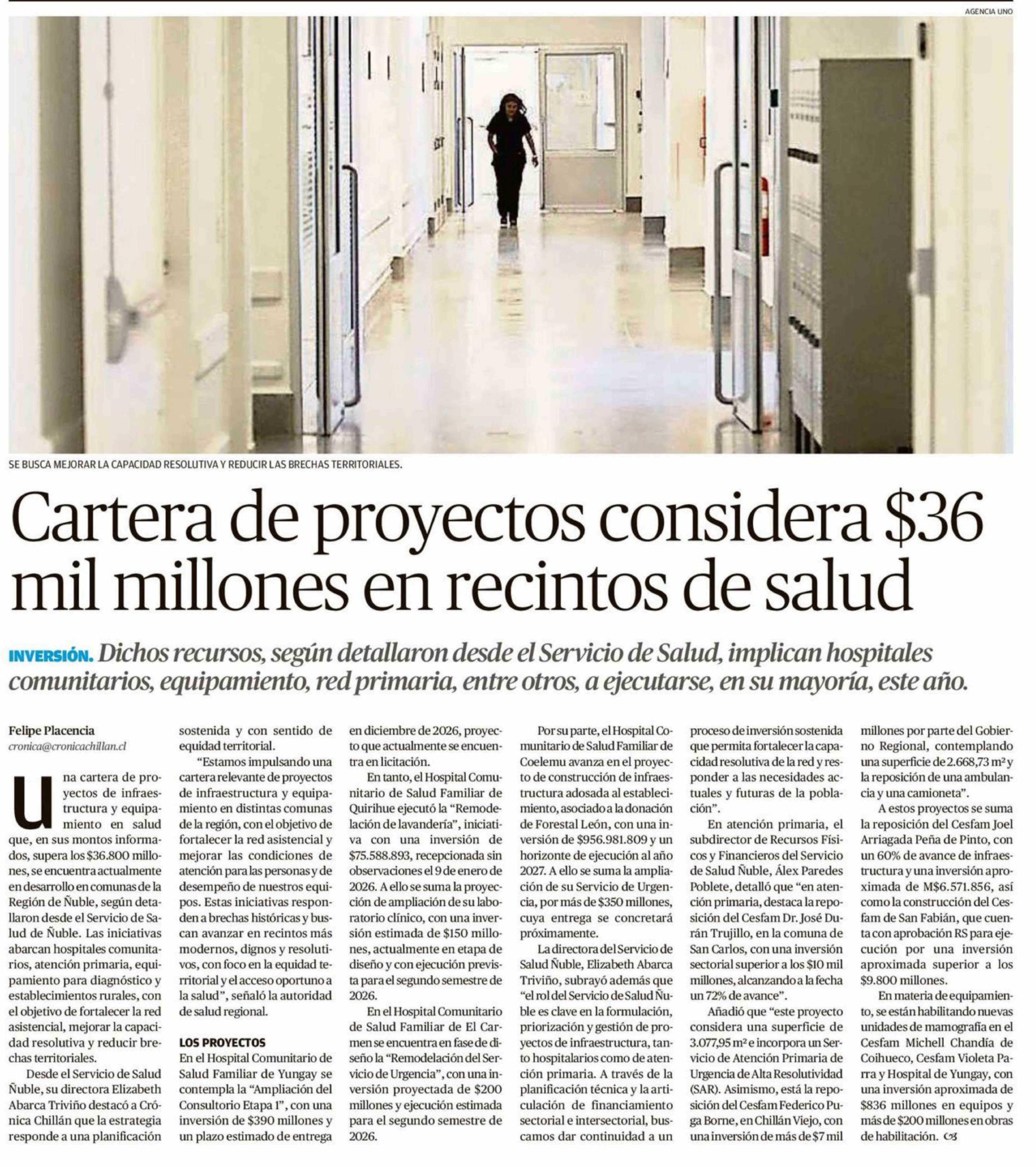 Cartera de proyectos considera $36 mil millones en recintos de salud