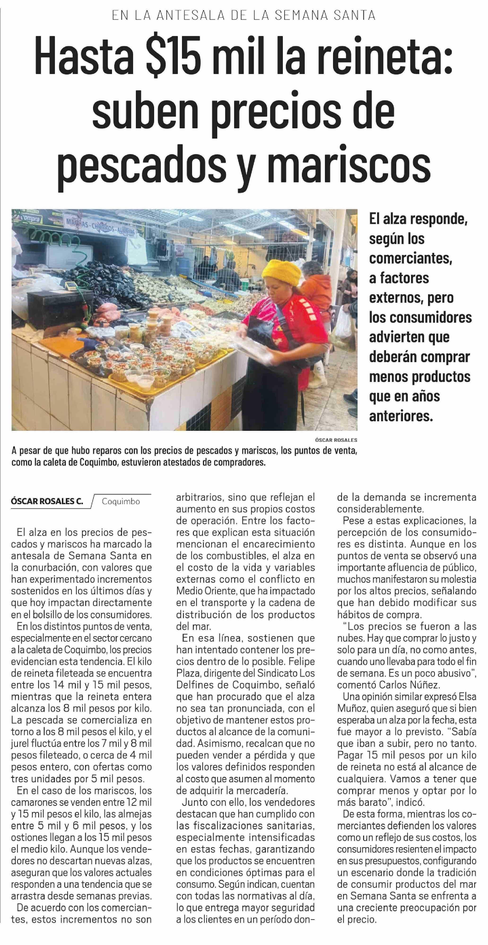Hasta $15 mil la reineta: suben precios de pescados y mariscos