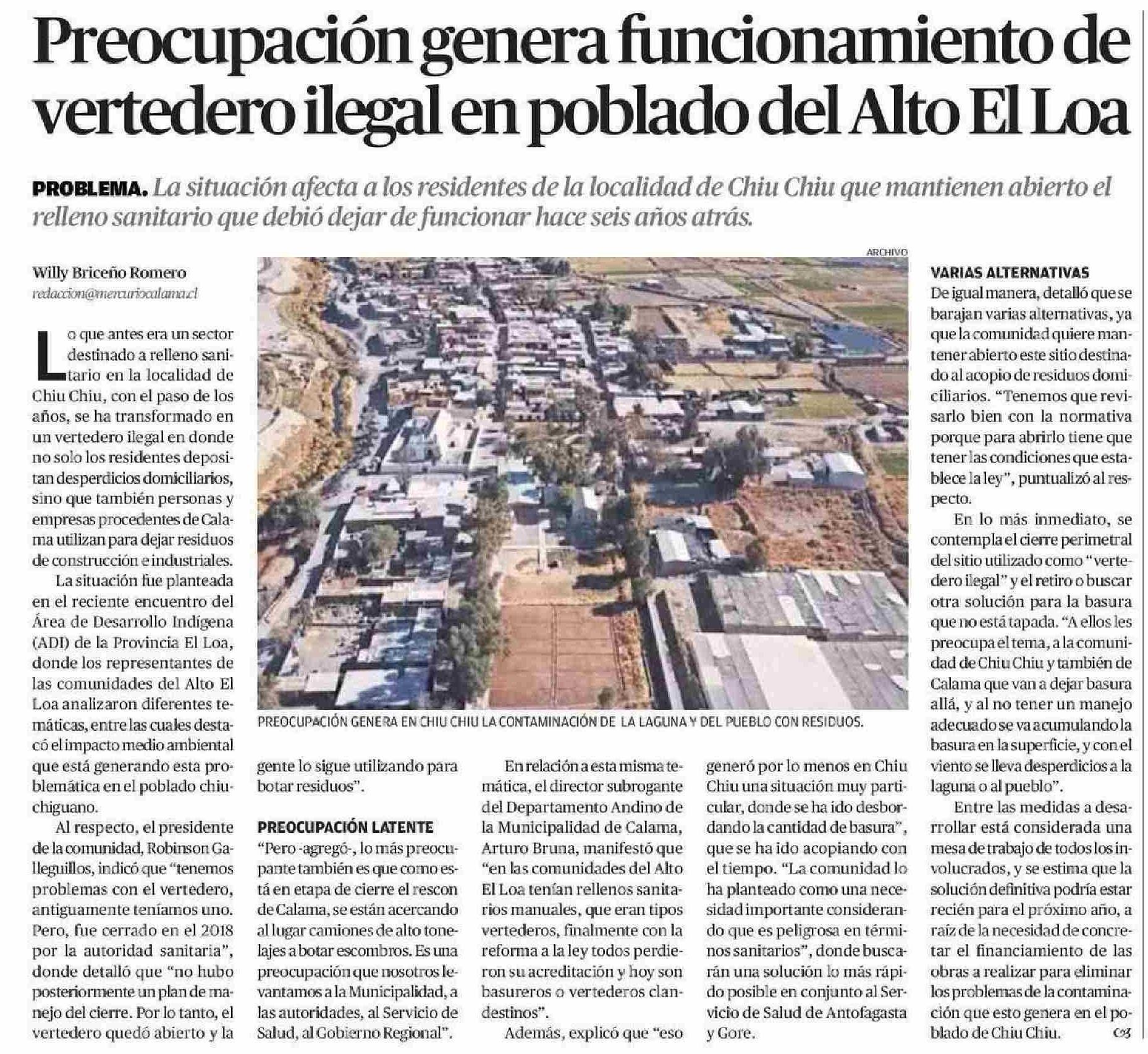 Preocupación genera funcionamiento de vertedero ilegal en poblado del Alto El Loa
