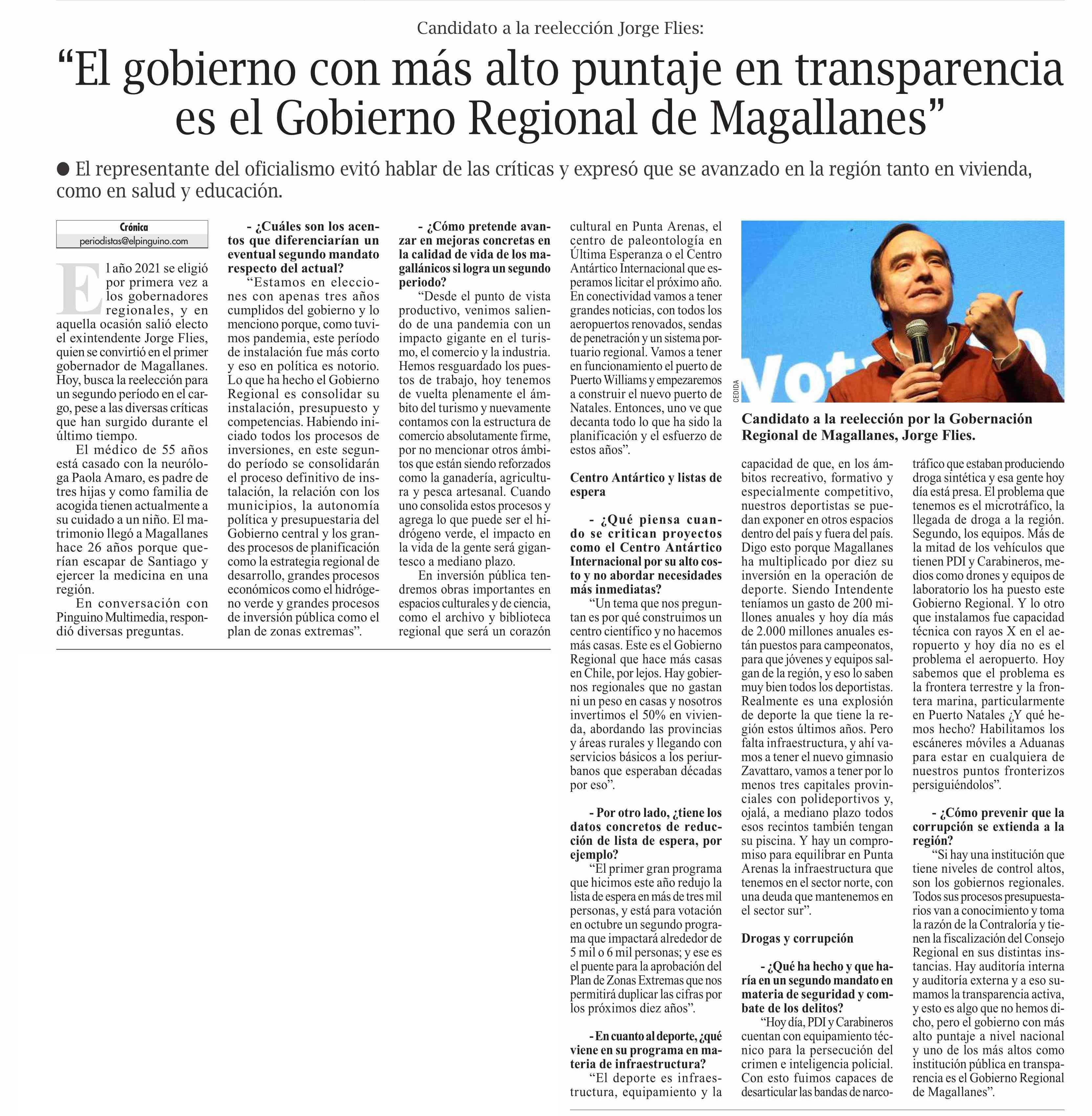 “El gobierno con más alto puntaje en transparencia es el Gobierno Regional de Magallanes”