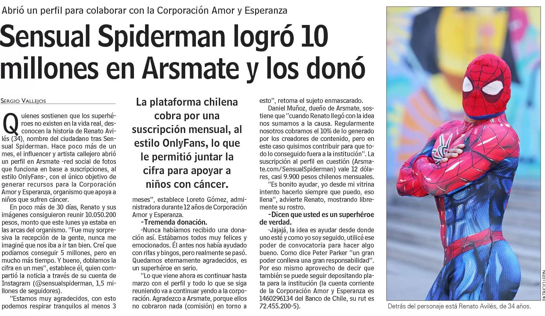 Sensual Spiderman logró 10 millones en Arsmate y los donó