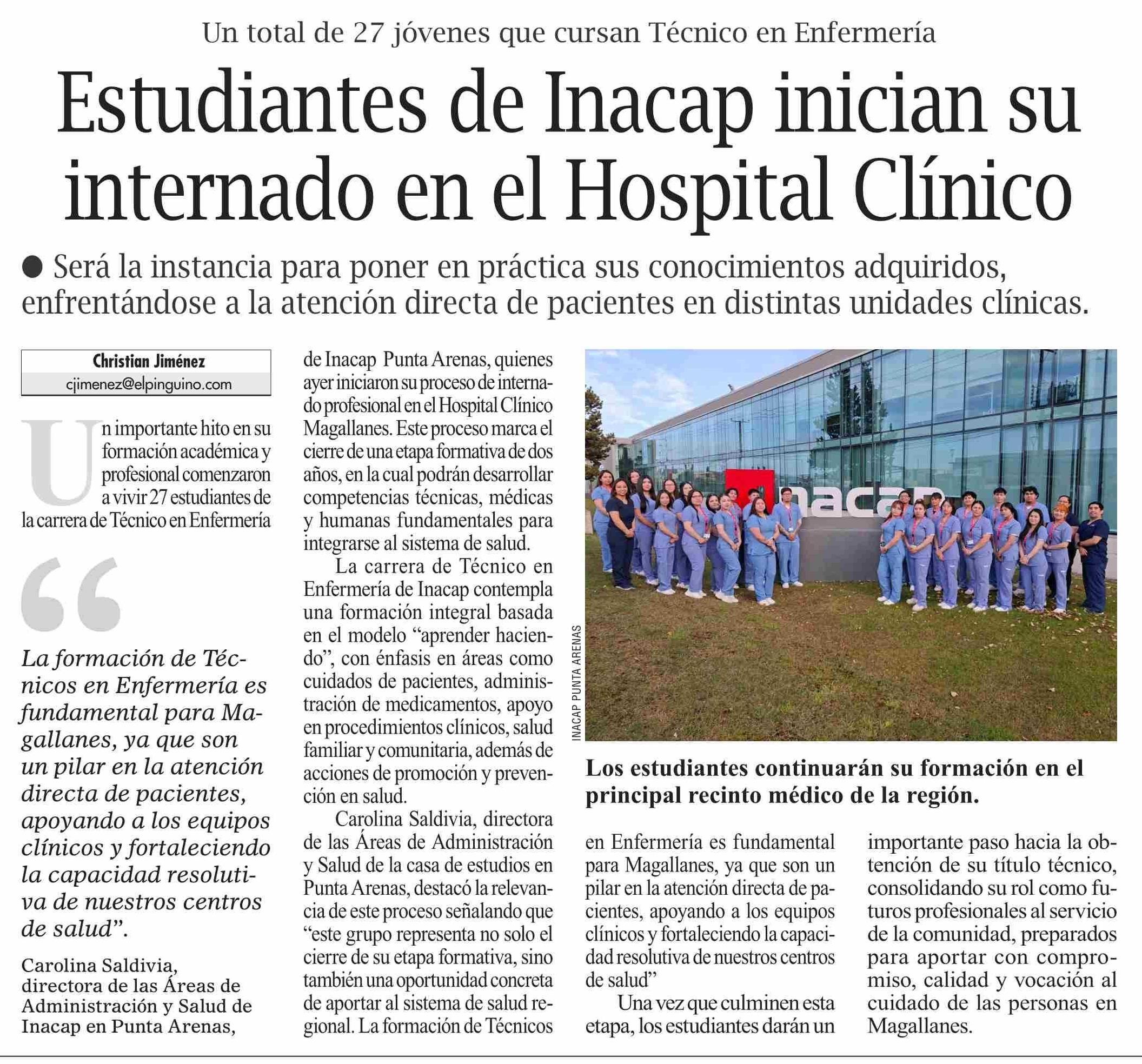 Estudiantes de Inacap inician su internado en el Hospital Clínico