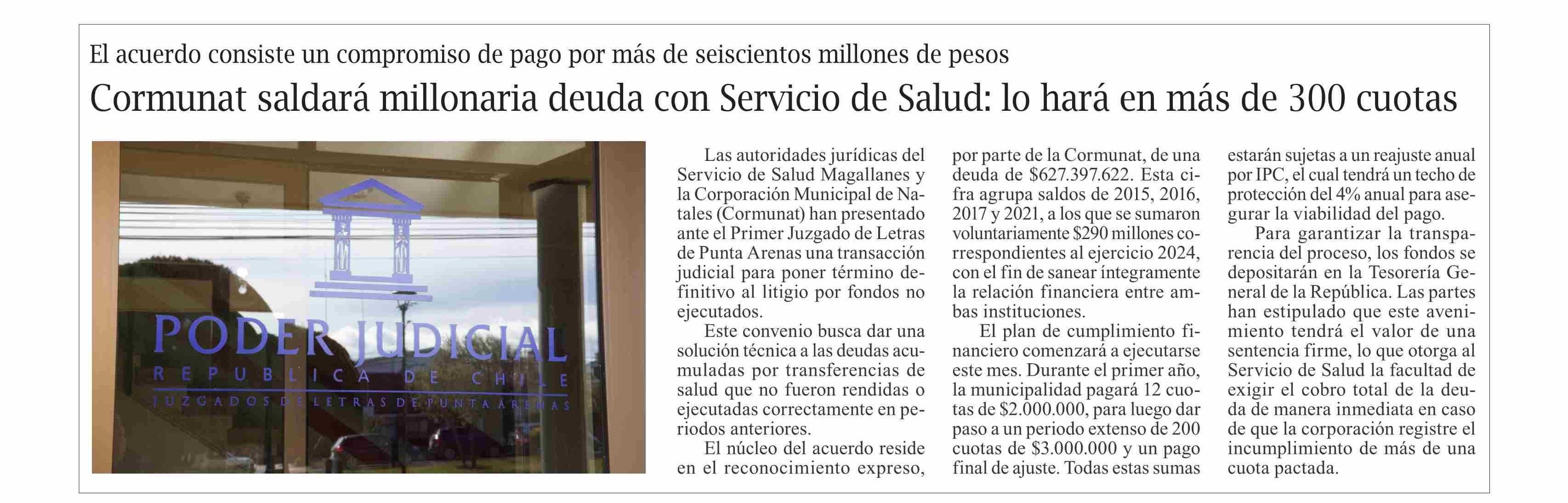 Cormunat saldará millonaria deuda con Servicio de Salud: lo hará en más de 300 cuotas