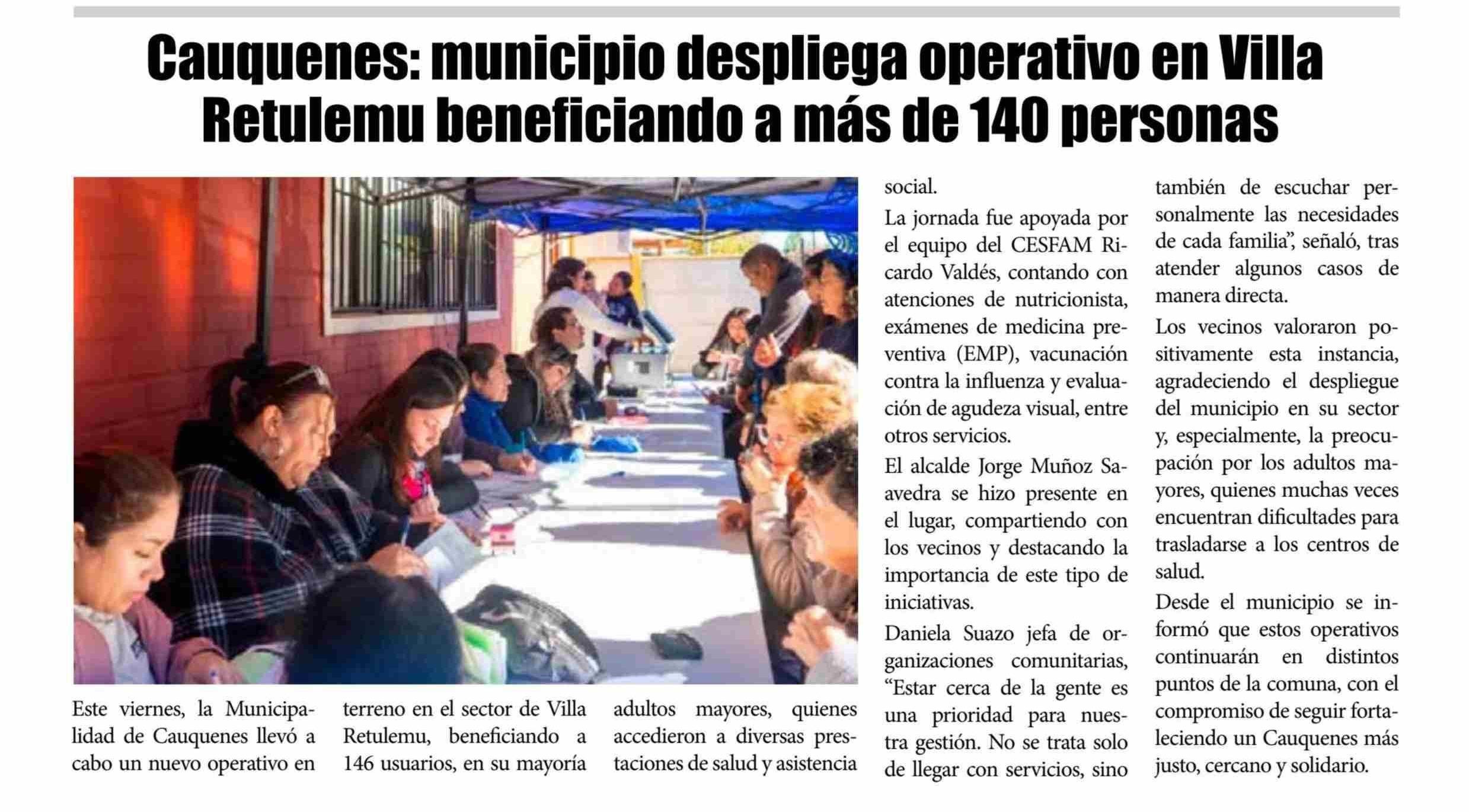 Cauquenes: municipio despliega operativo en Villa Retulemu beneficiando a más de 140 personas