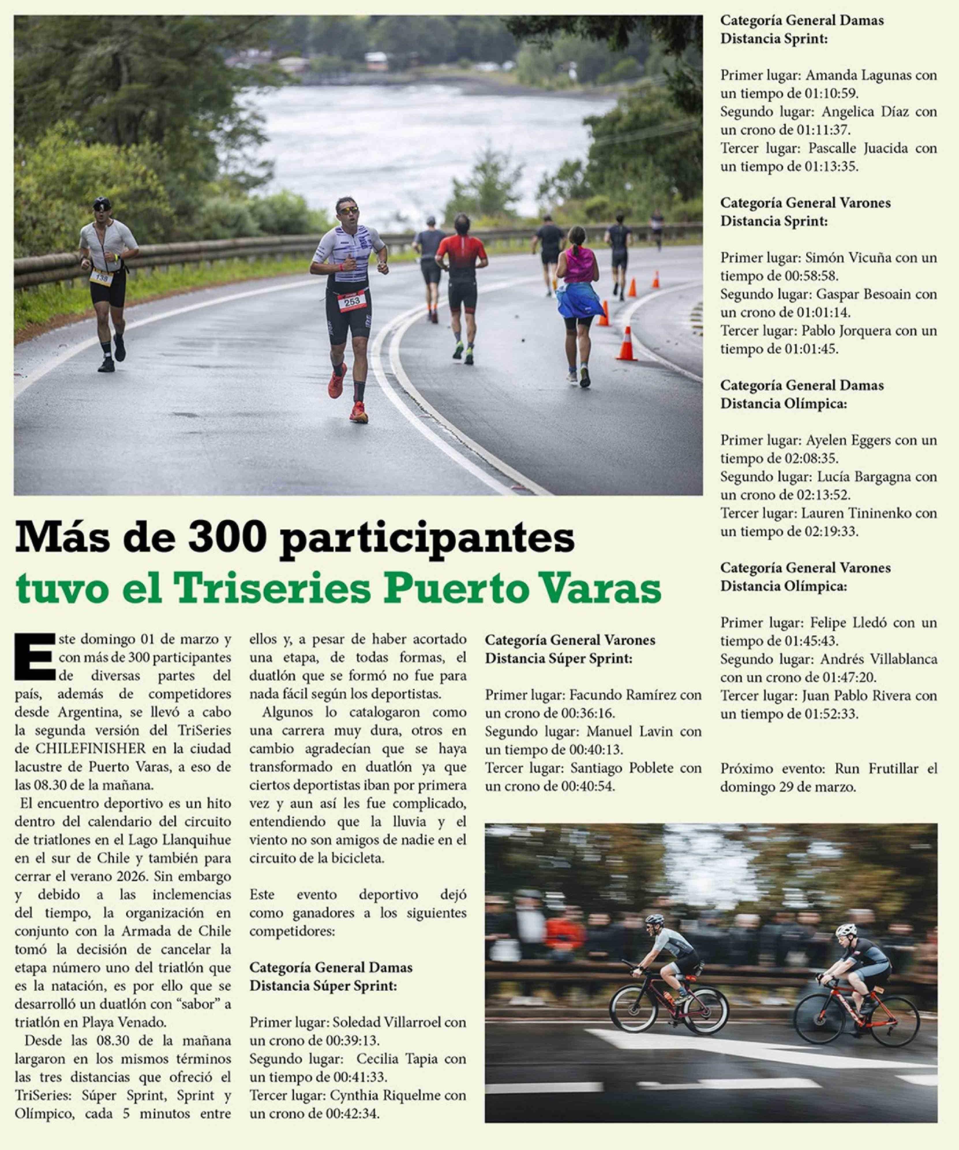 Más de 300 participantes tuvo el Triseries Puerto Varas