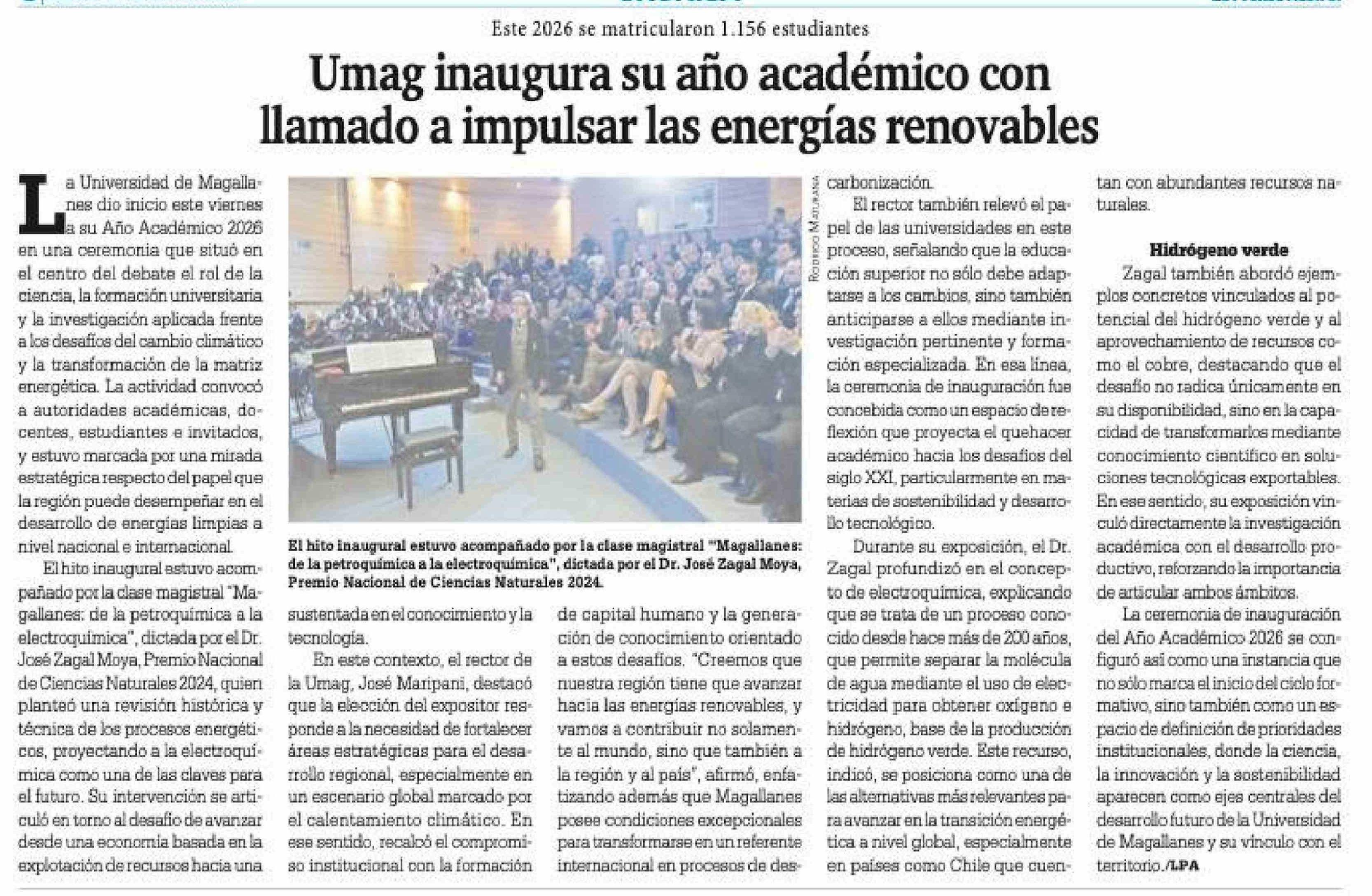Umag inaugura su año académico con llamado a impulsar las energías renovables