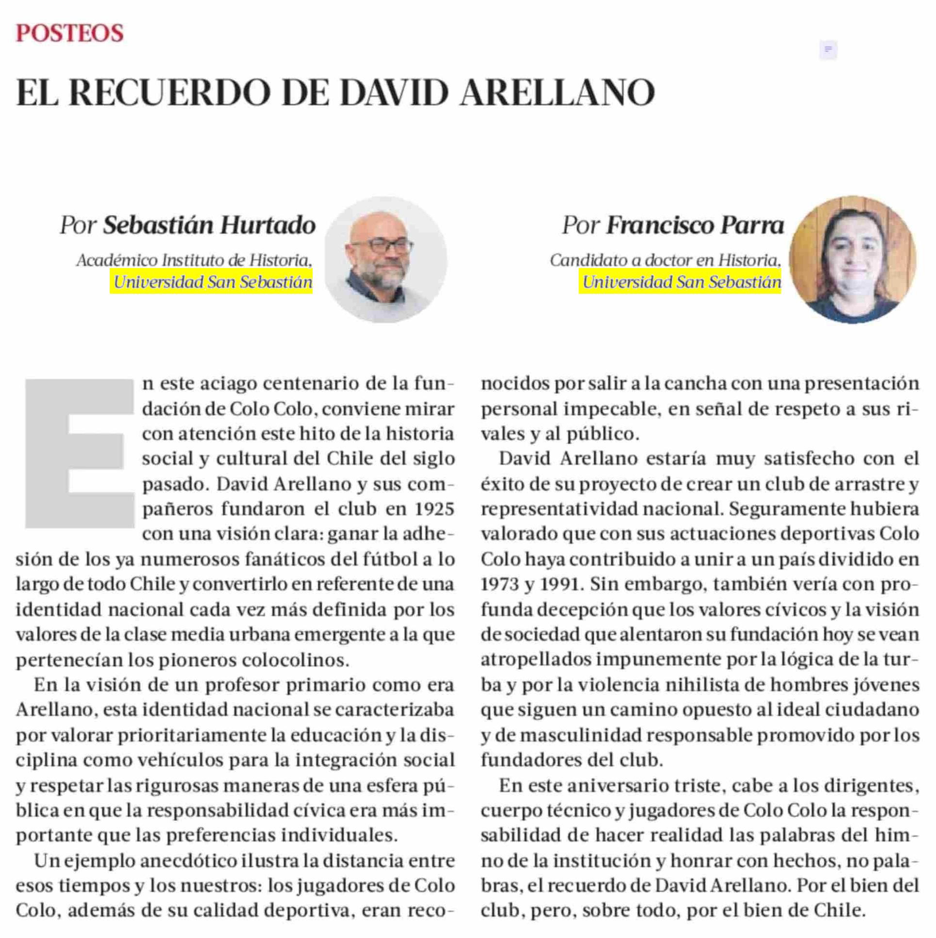Columnas de Opinión: EL RECUERDO DE DAVID ARELLANO