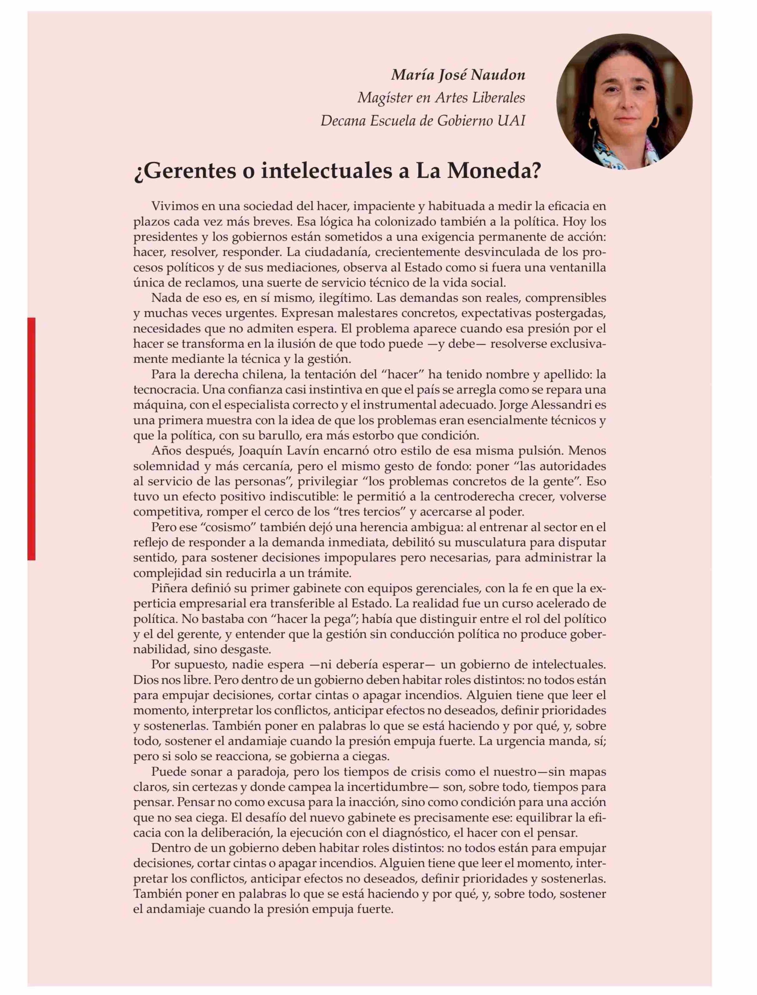 ¿Gerentes o intelectuales a La Moneda?
