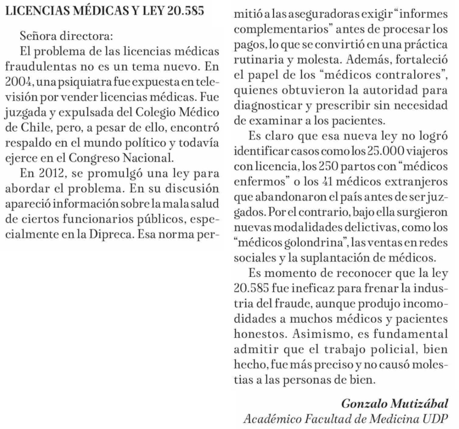 Título: CARTAS: LICENCIAS MÉDICAS Y LEY 20.585