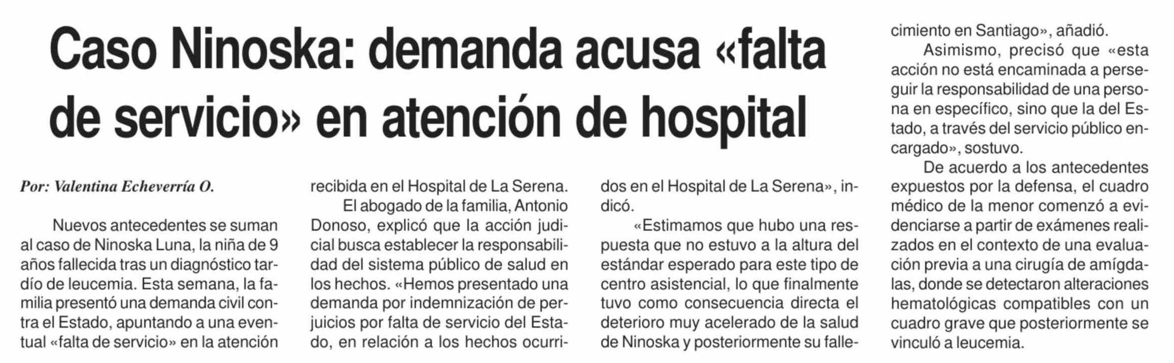 Caso Ninoska: demanda acusa «falta de servicio» en atención de hospital
