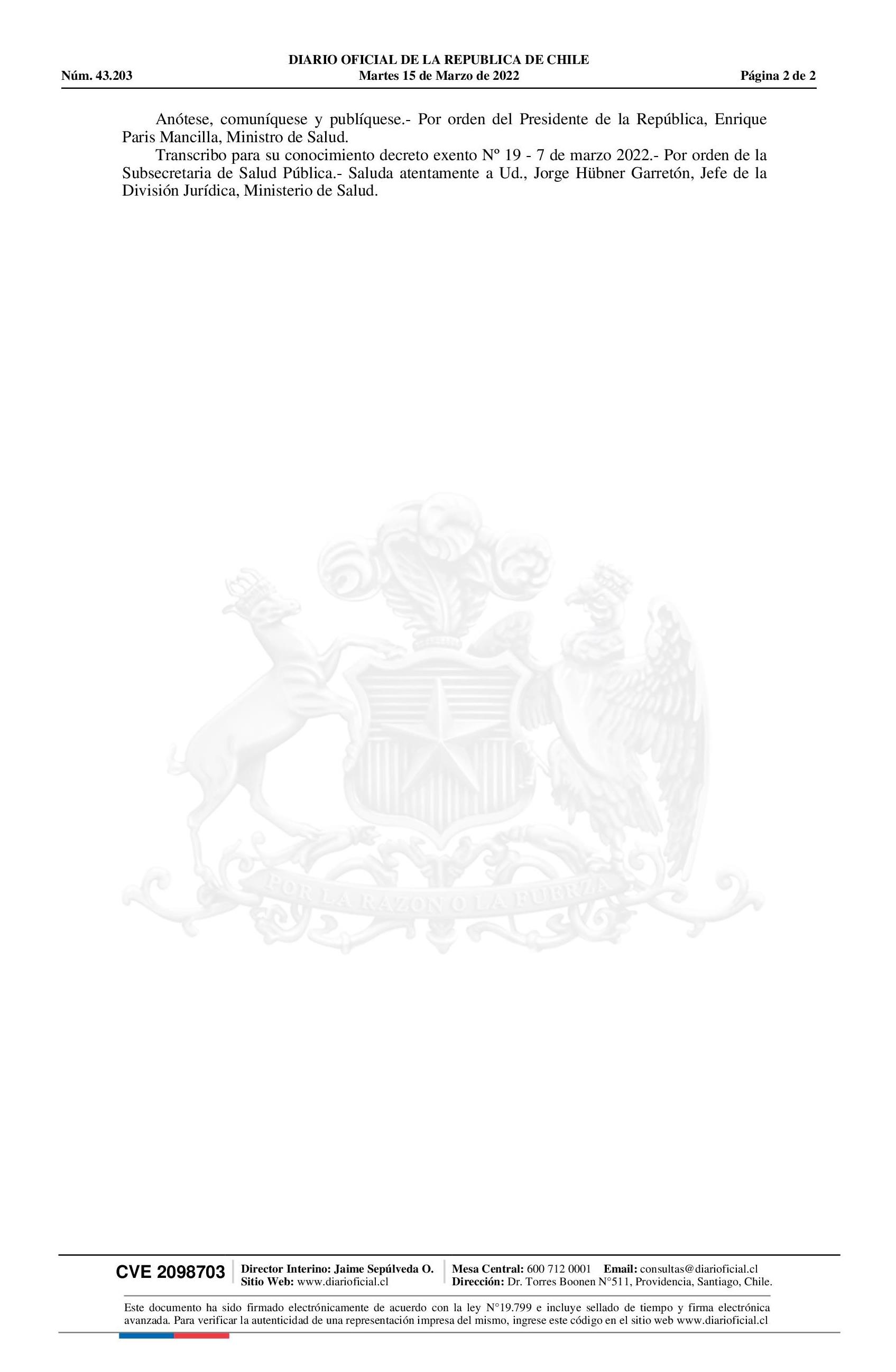 | Fuente: | Diario Oficial Edición Electrónica (Diario Oficial de Chile - 1 Normas Generales) | Página(s): | 62-63 |