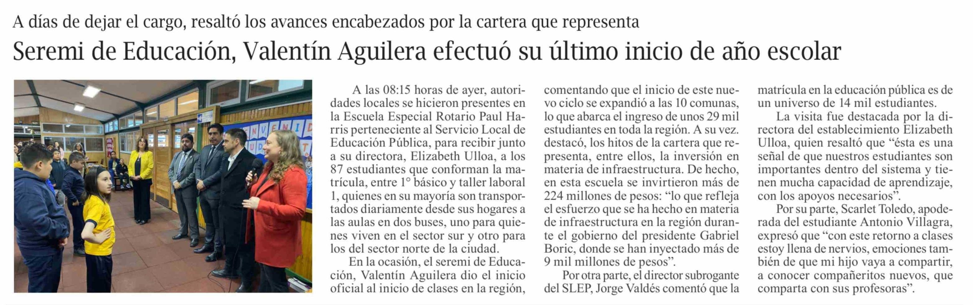 Seremi de Educación, Valentín Aguilera efectuó su último inicio de año escolar