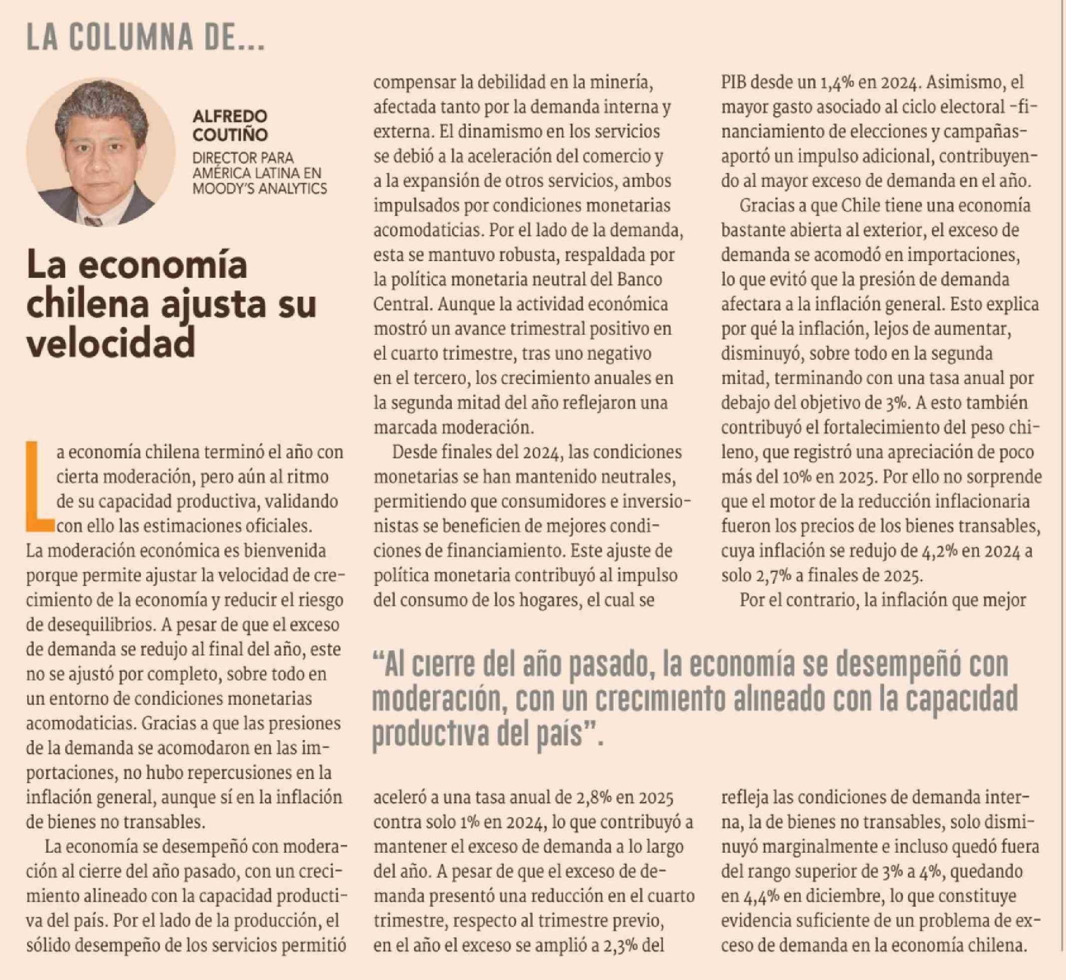 Columnas de Opinión: La economía chilena ajusta su velocidad