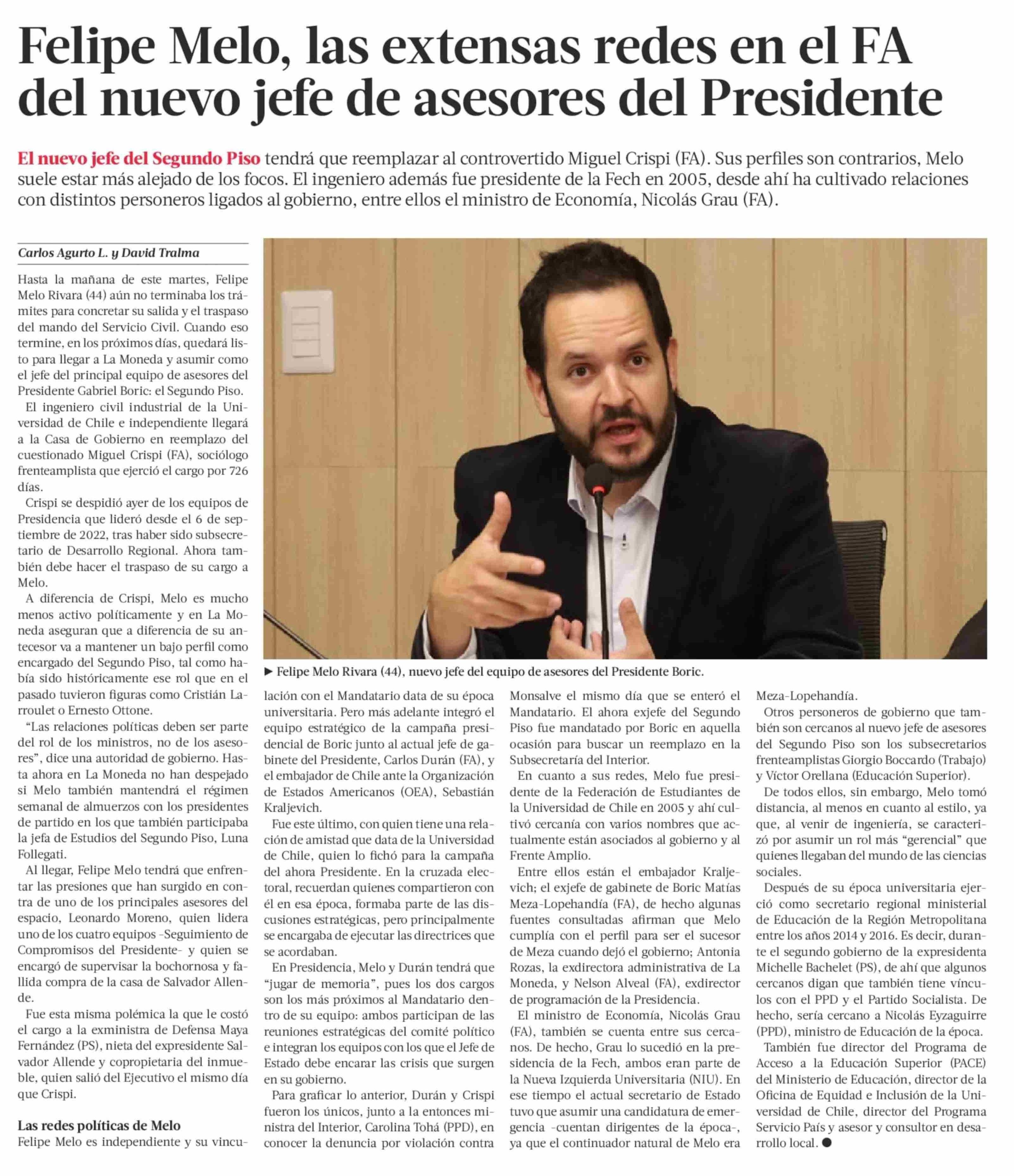 Felipe Melo, las extensas redes en el FA del nuevo jefe de asesores del Presidente