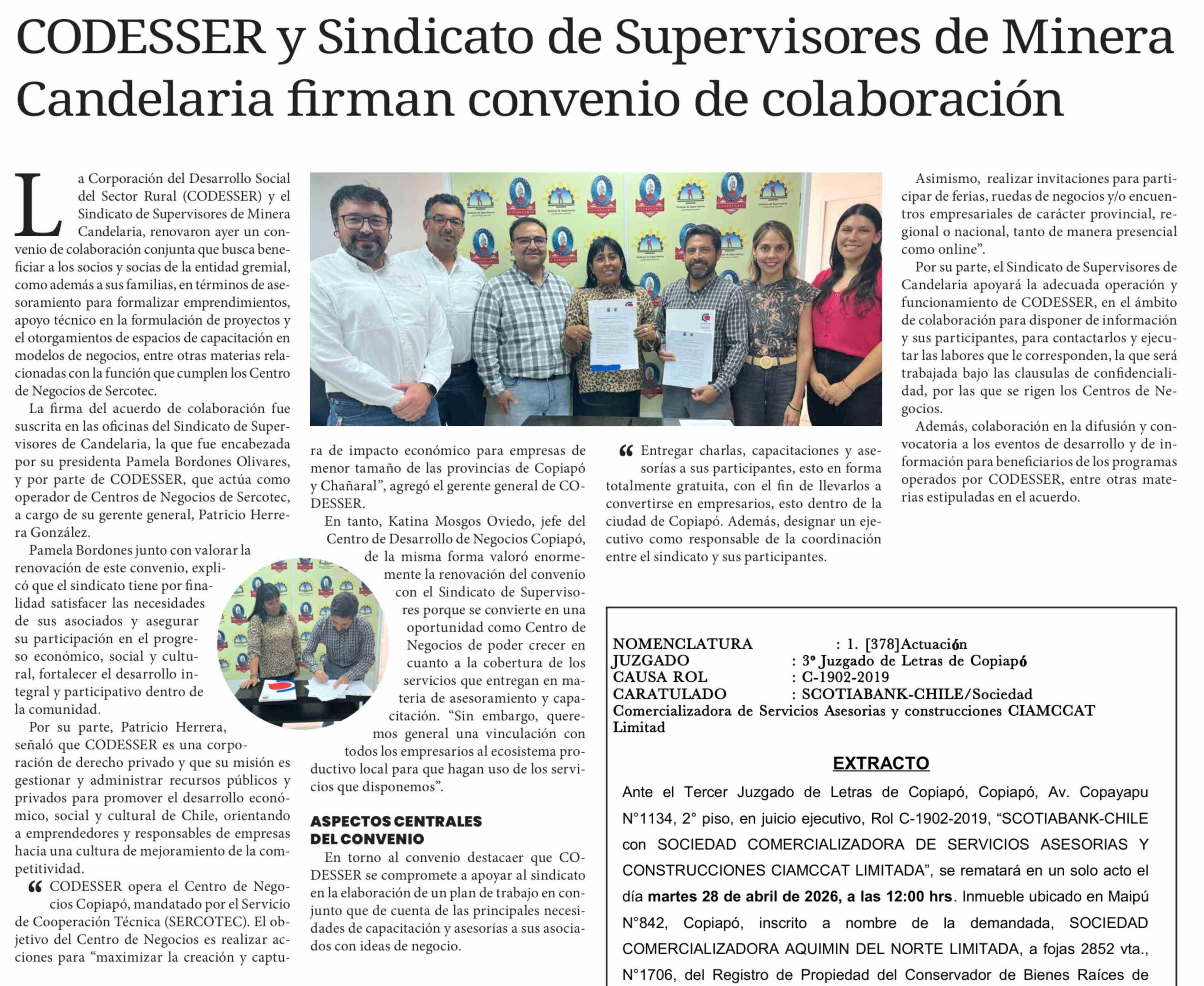 CODESSER y Sindicato de Supervisores de Minera Candelaria firman convenio de colaboración