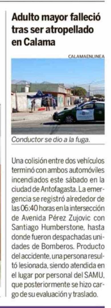 Adulto mayor falleció tras ser atropellado en Calama