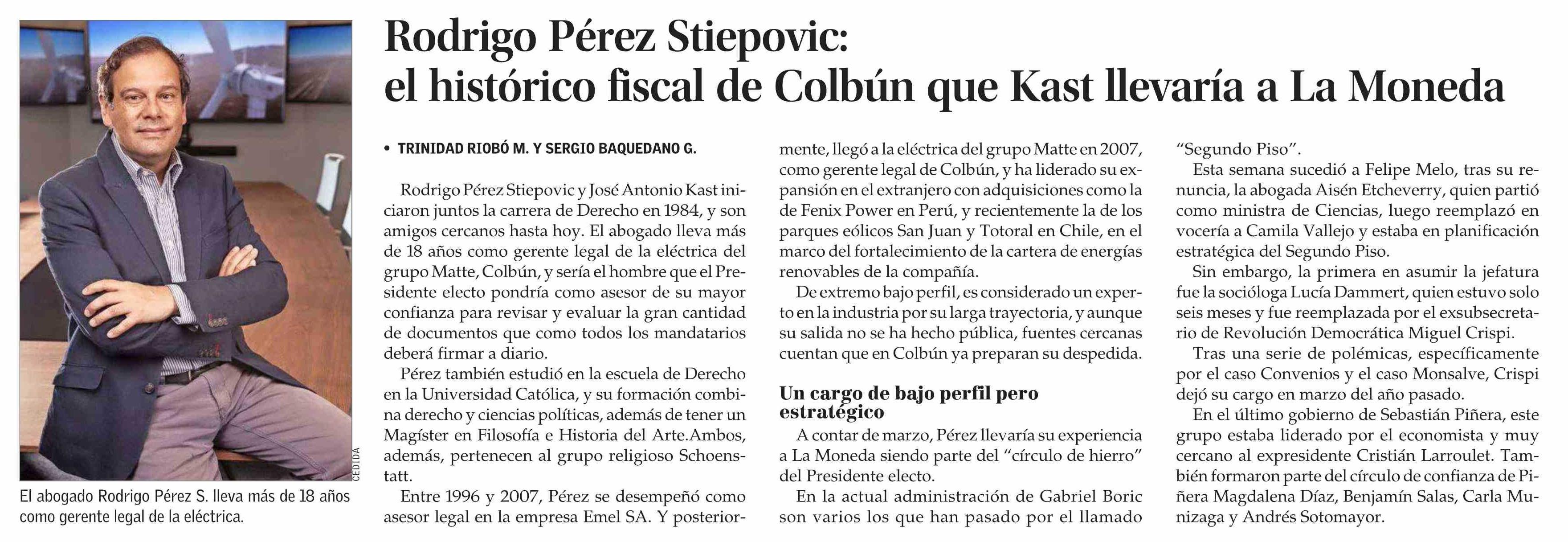 Rodrigo Pérez Stiepovic: el histórico fiscal de Colbún que Kast llevaría a La Moneda