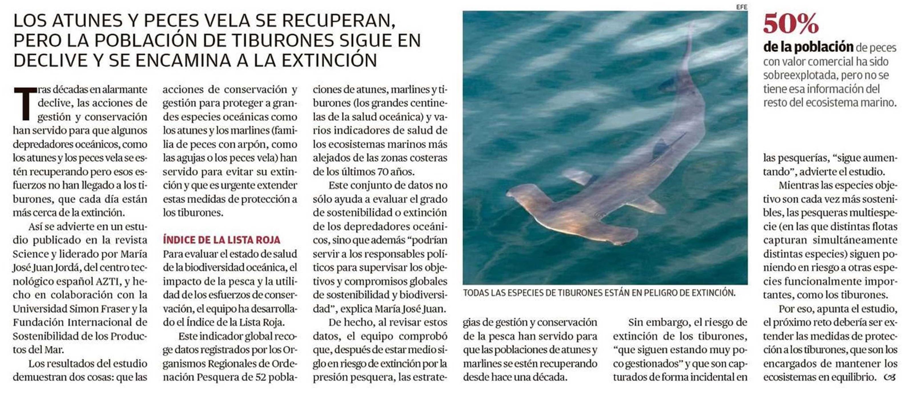 LOS ATUNES Y PECES VELA SE RECUPERAN, PERO LA POBLACIÓN DE TIBURONES SIGUE EN DECLIVE Y SE ENCAMINA A LA EXTINCION