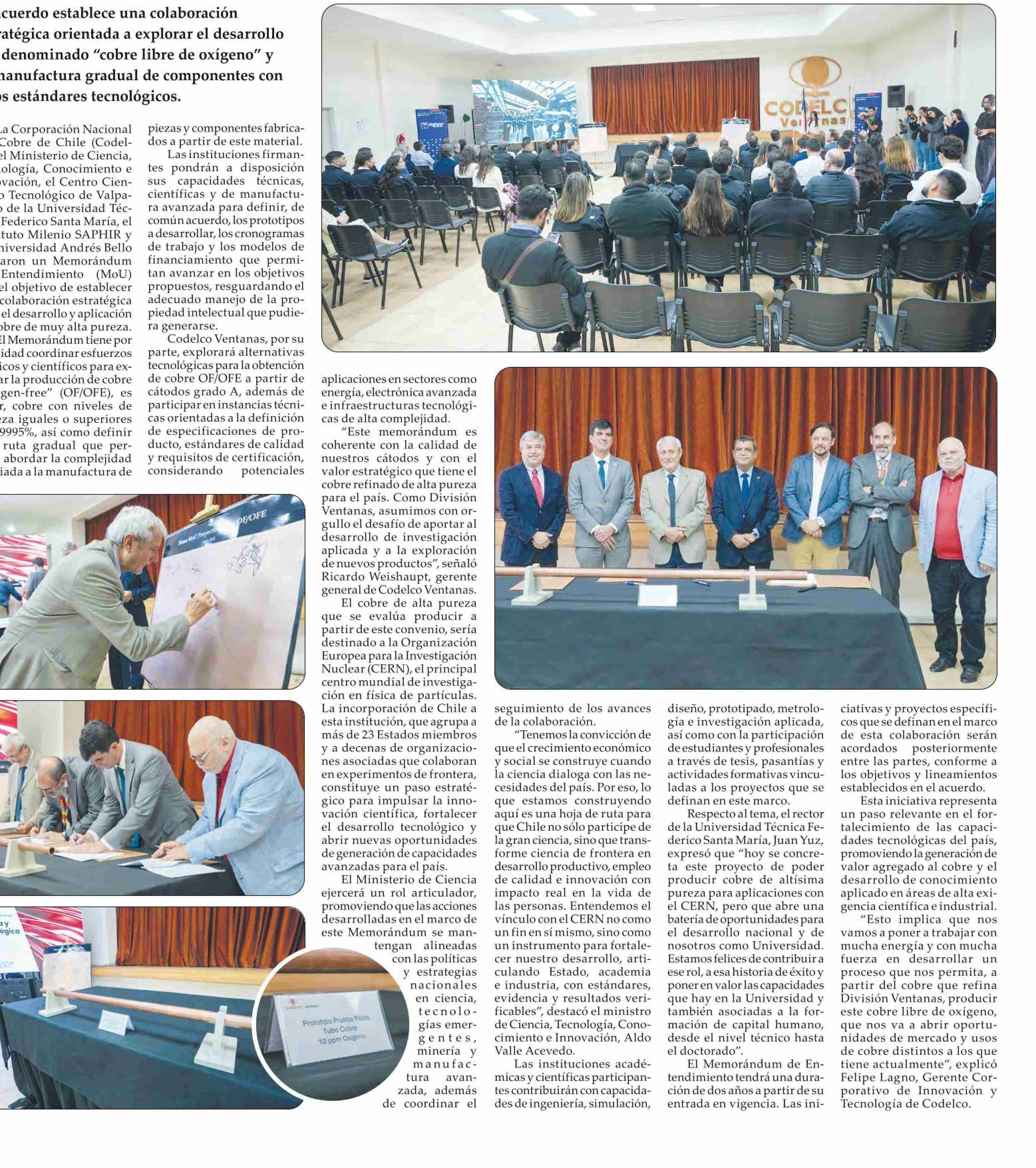 Codelco impulsa desarrollo de cobre de alta pureza con apoyo científico