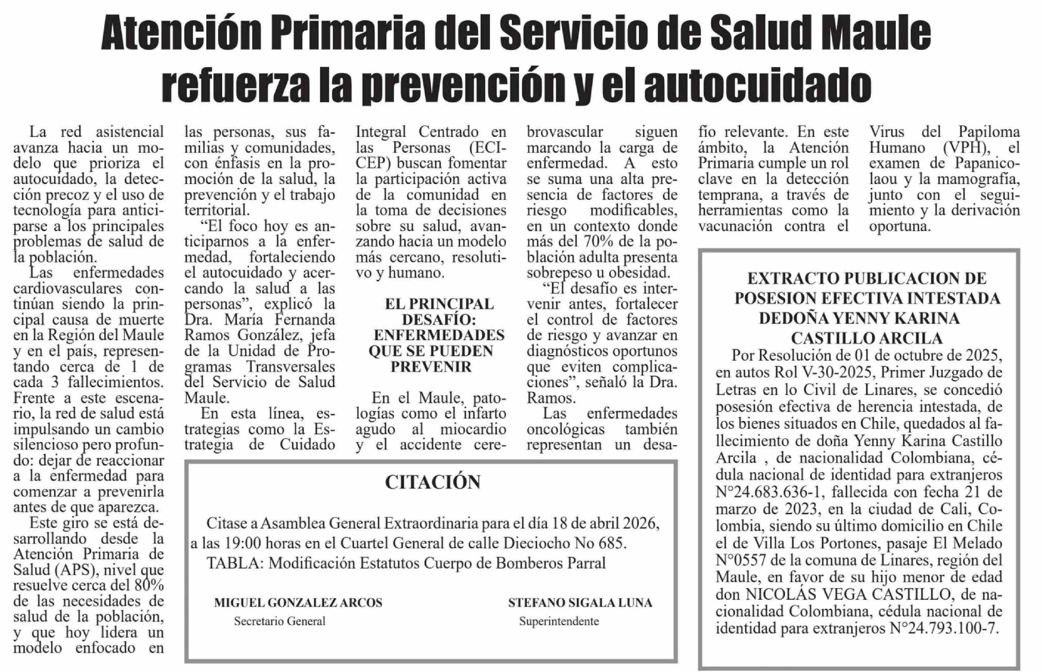 Fecha: 14-04-2026 Sector: Noticia general Región: Región del Maule