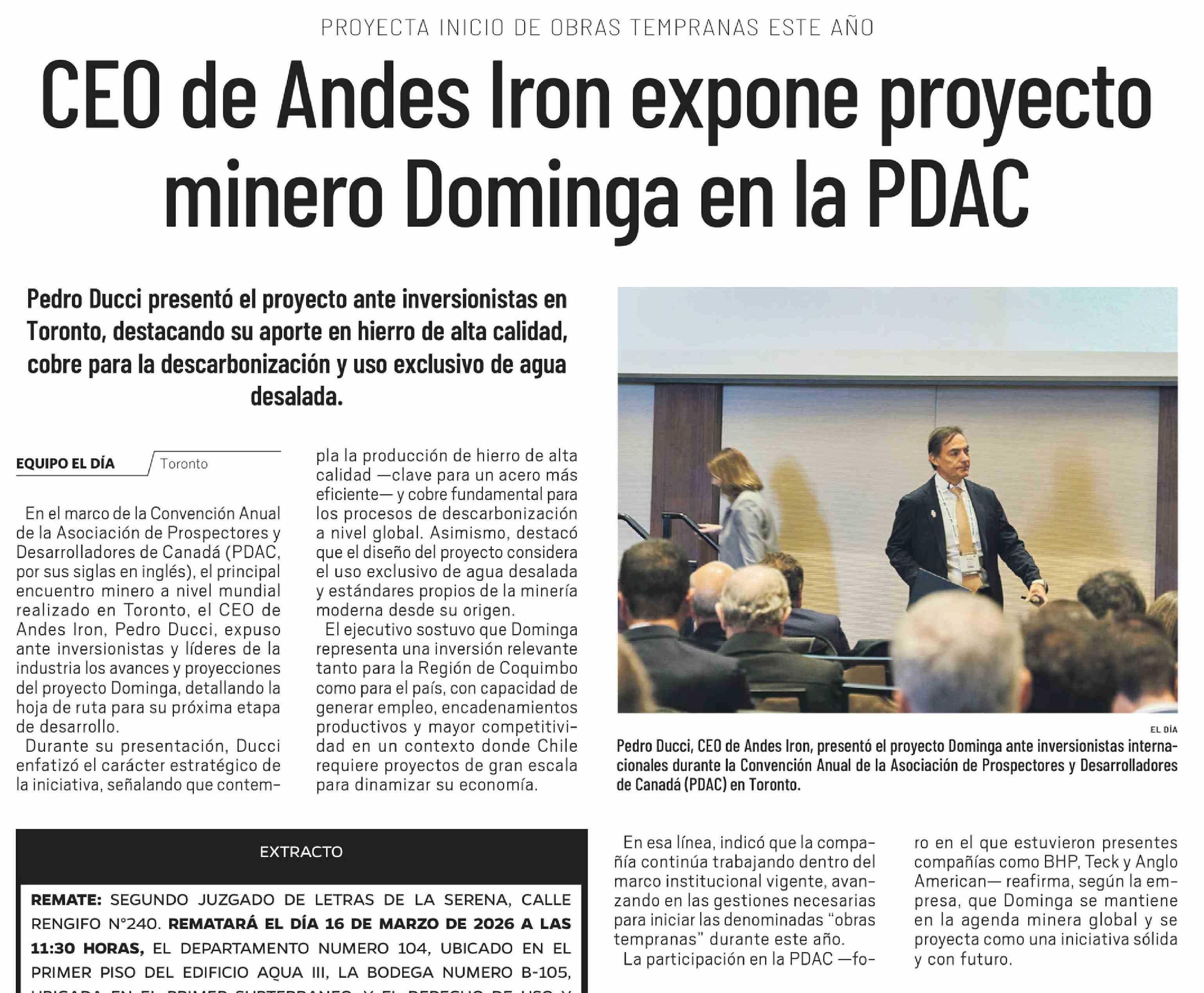 CEO de Andes Iron expone proyecto minero Dominga en la PDAC