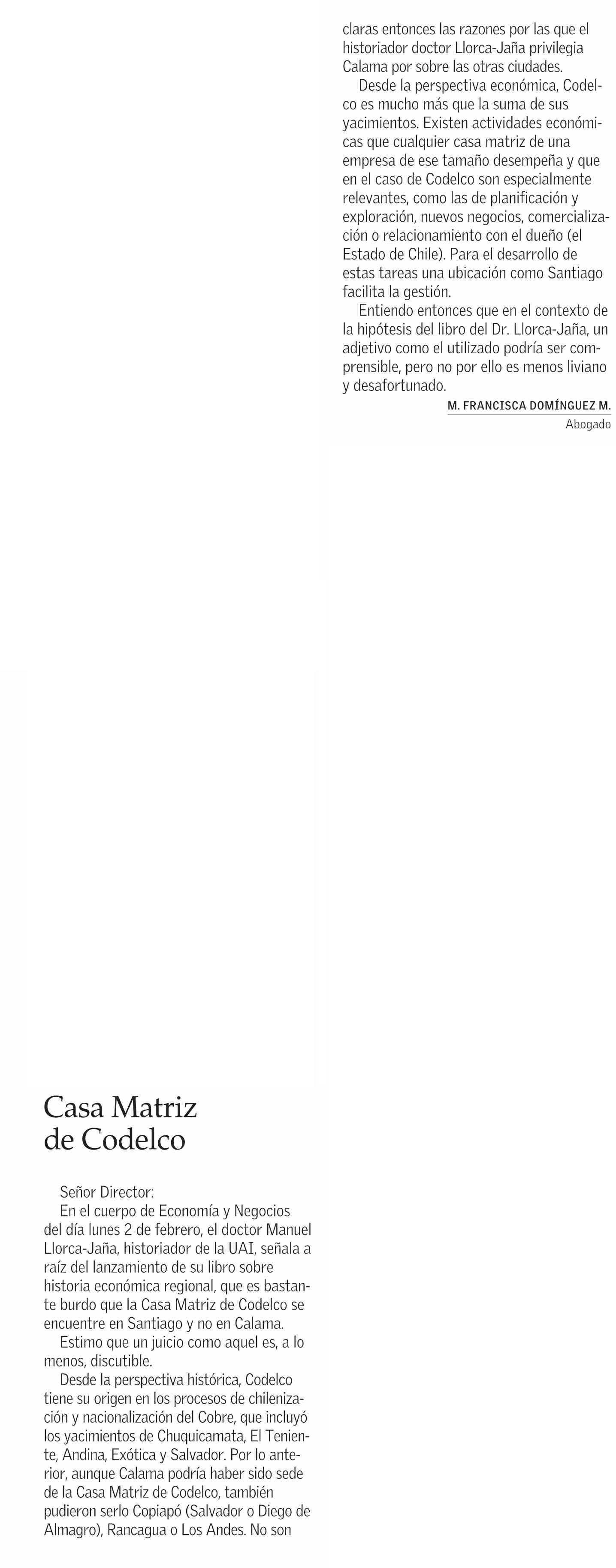 CARTAS: Casa Matriz de Codelco
