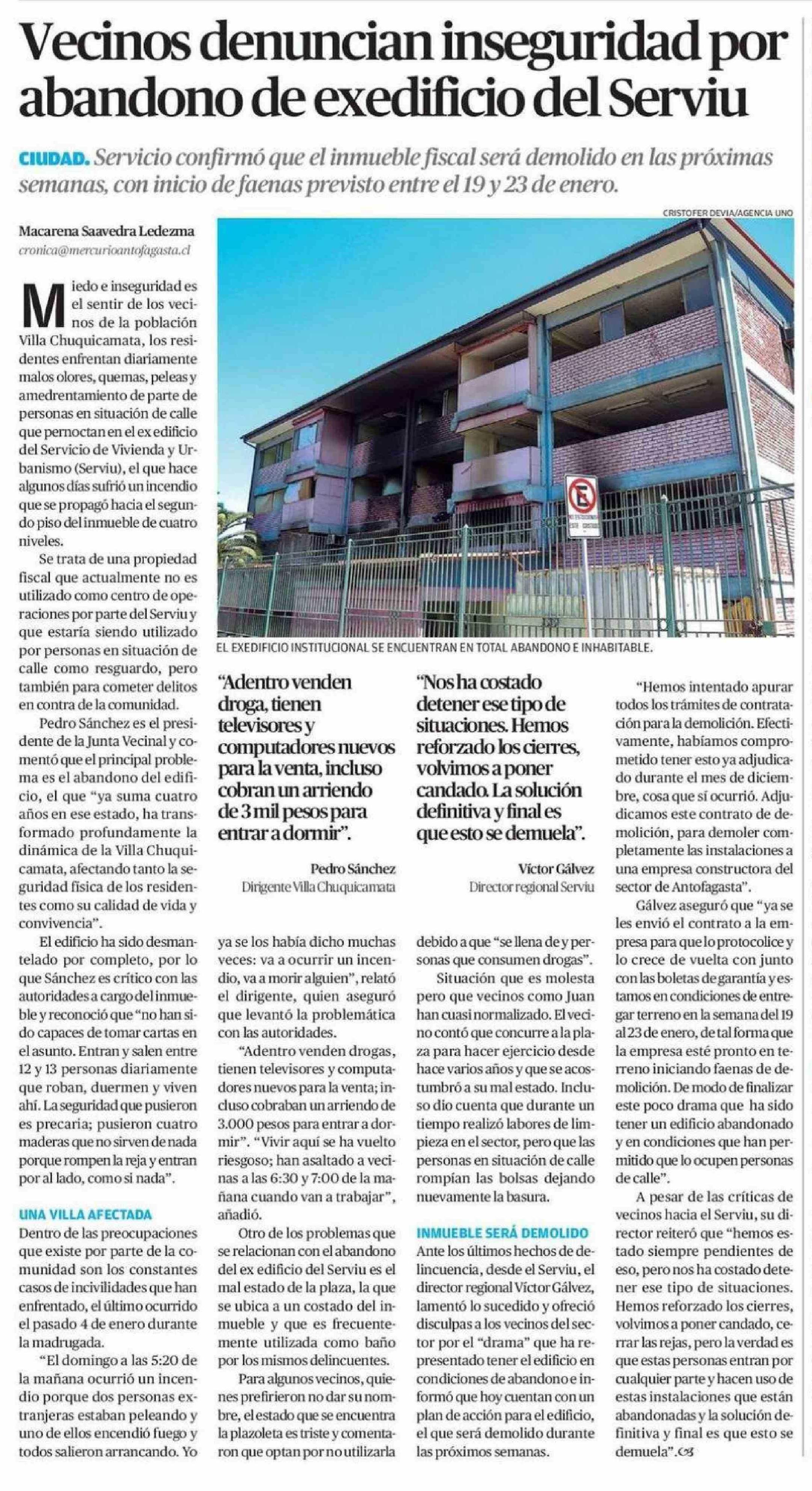 Vecinos denuncian inseguridad por abandono de exedificio del Serviu