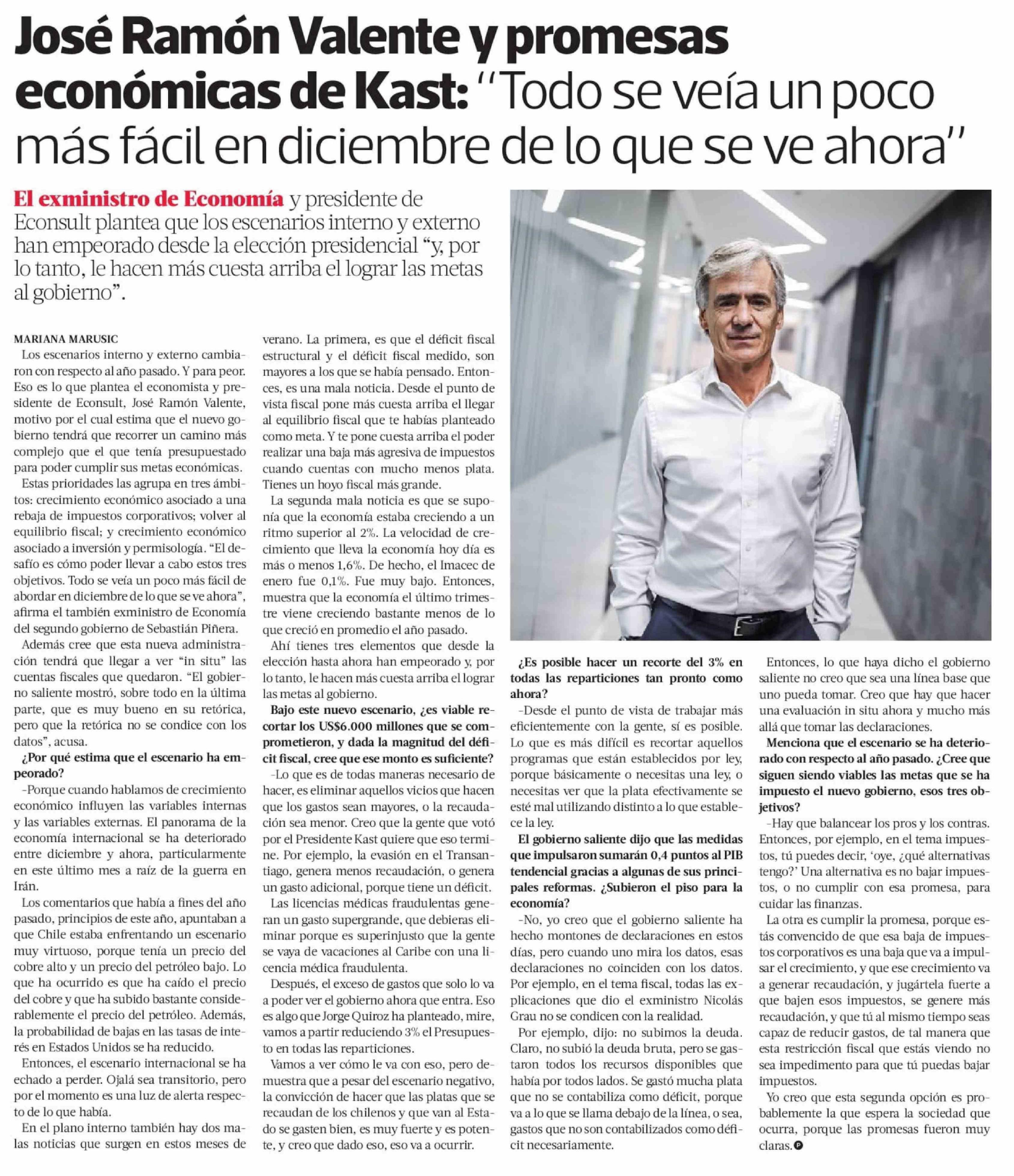 José Ramón Valente y promesas económicas de Kast: "Todo se veía un poco más fácil en diciembre de lo que se ve ahora"
