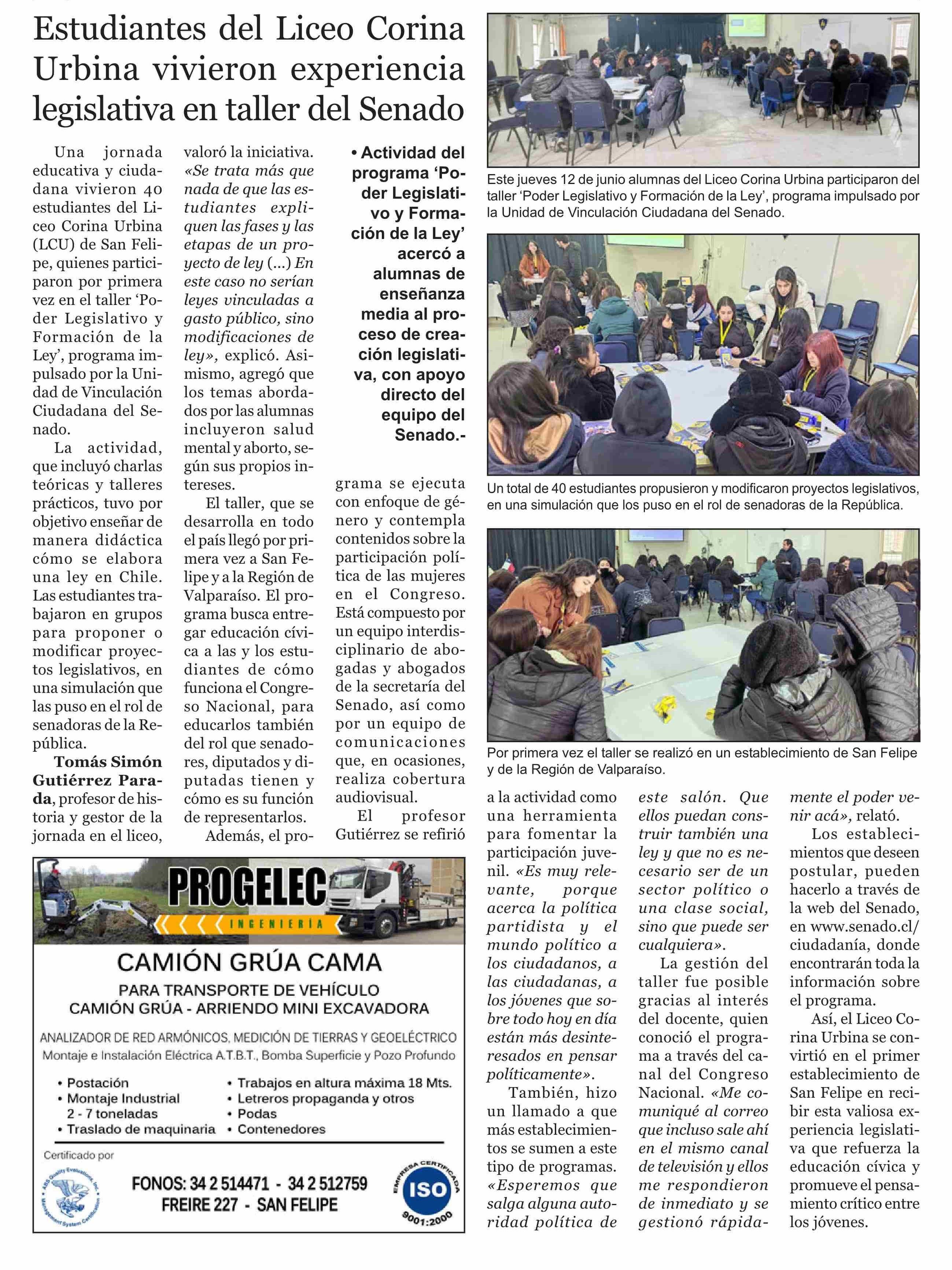 Estudiantes del Liceo Corina Urbina vivieron experiencia legislativa en taller del Senado
