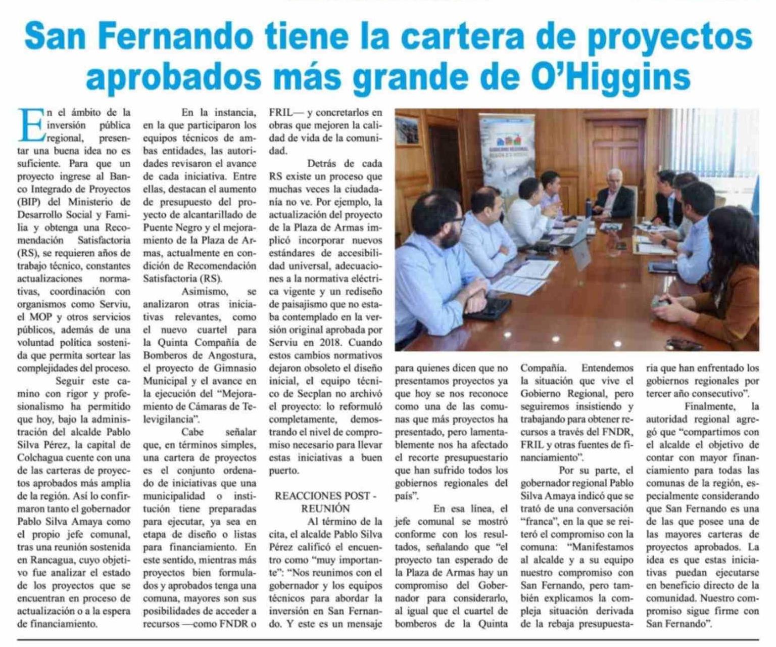 San Fernando tiene la cartera de proyectos aprobados más grande de O'Higgins