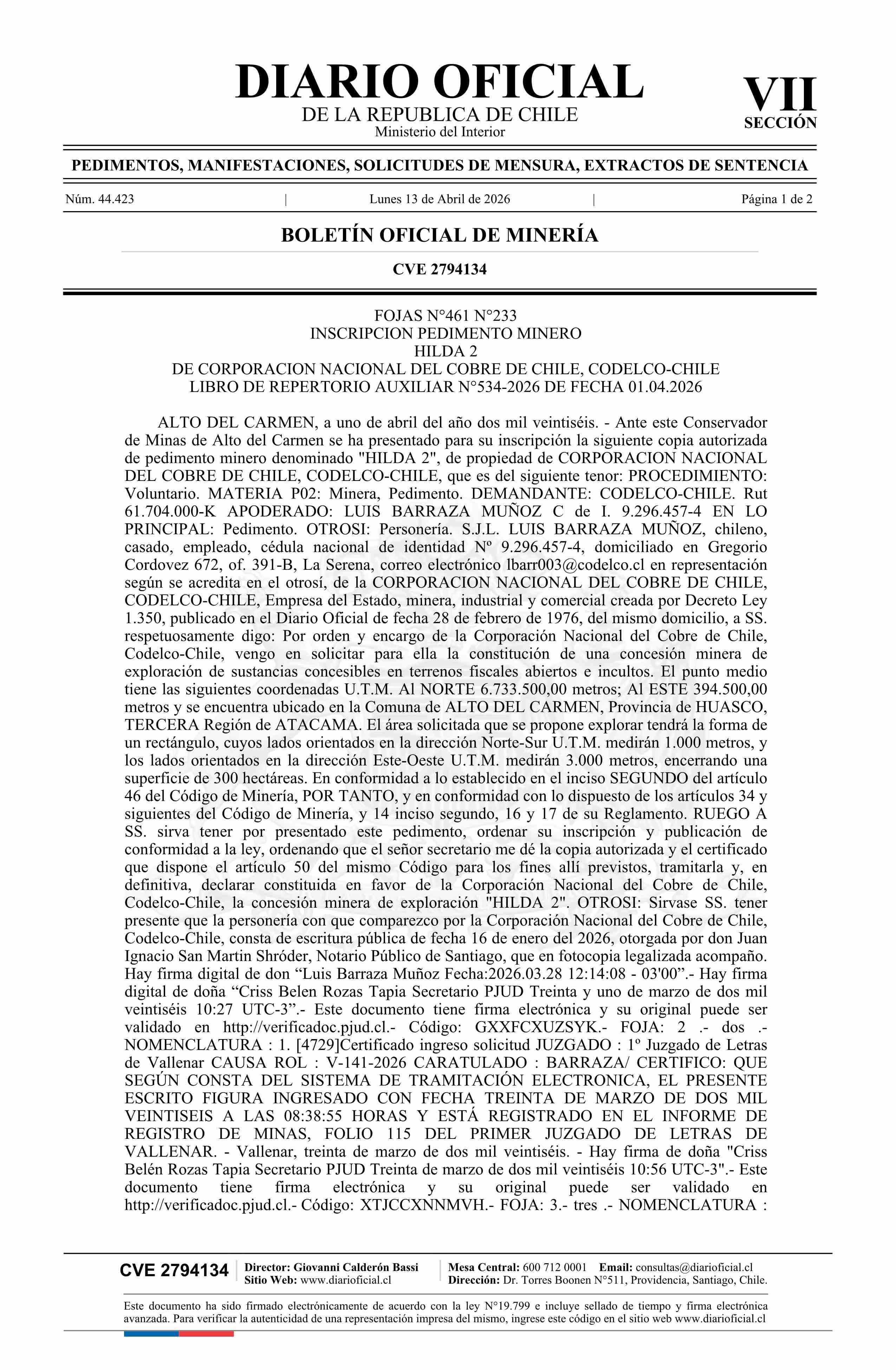 HILDA 2 / Corporación Nacional del Cobre de Chile