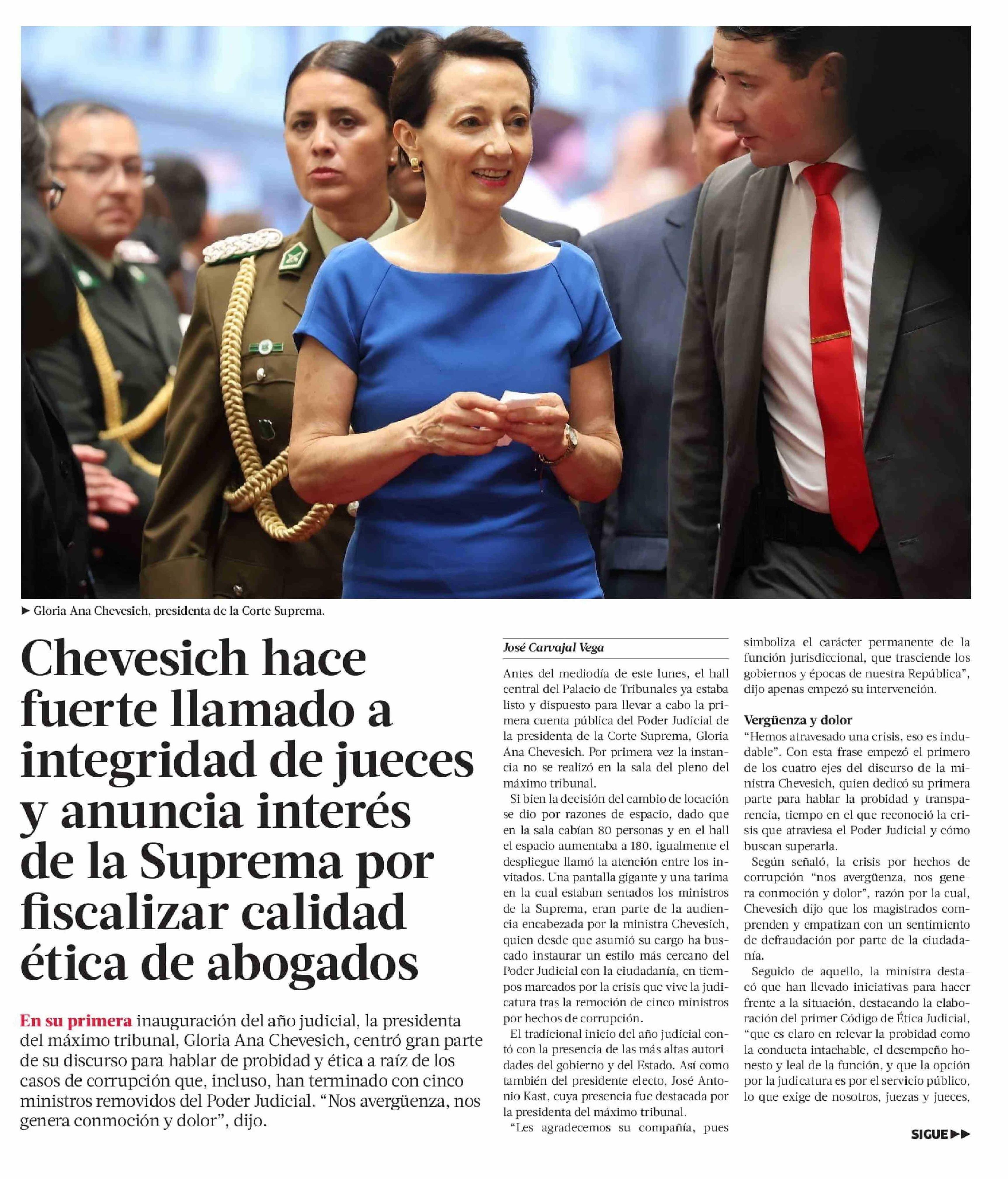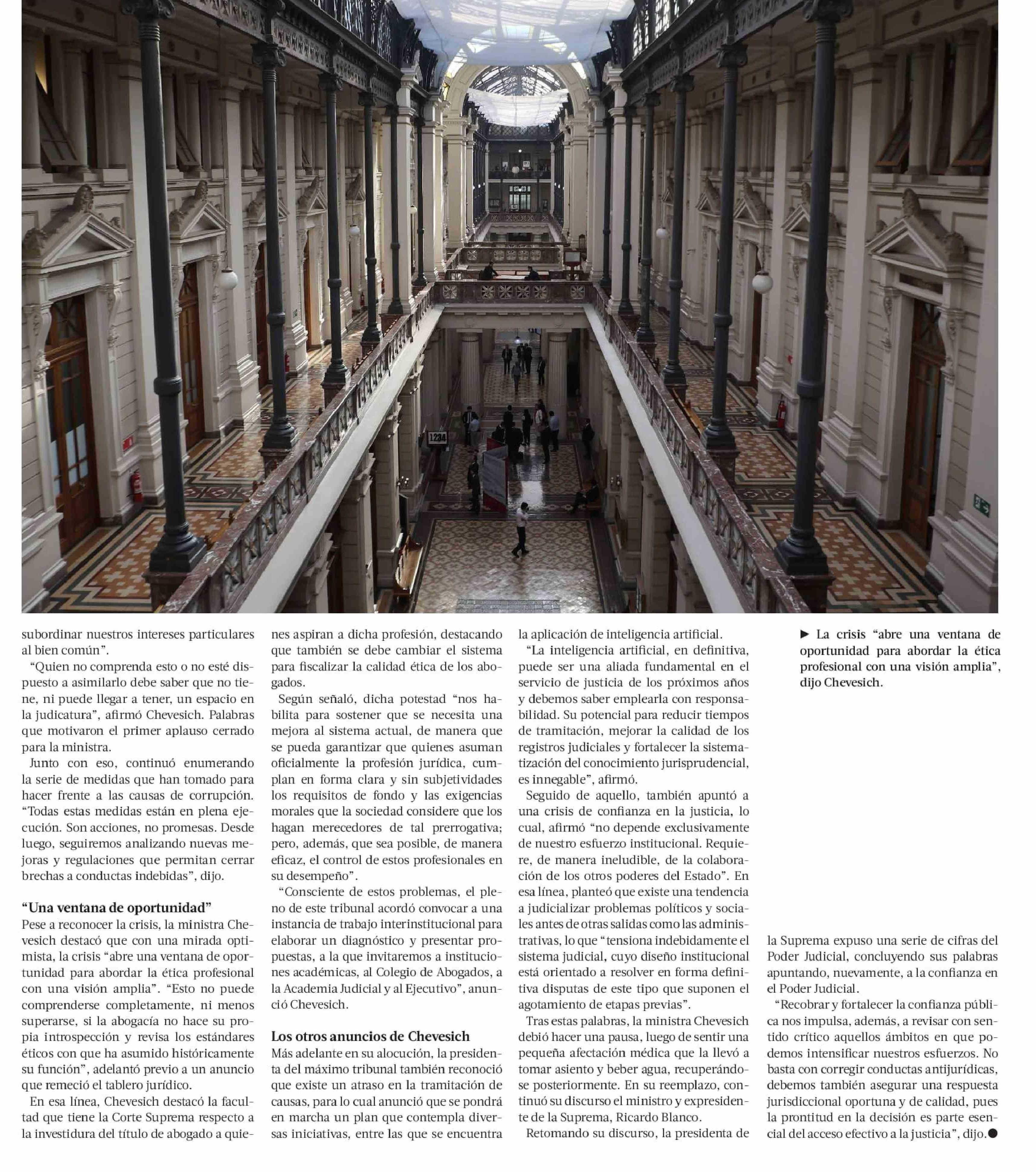 Chevesich hace fuerte llamado a integridad de jueces y anuncia interés de la Suprema por fiscalizar calidad ética de abogados