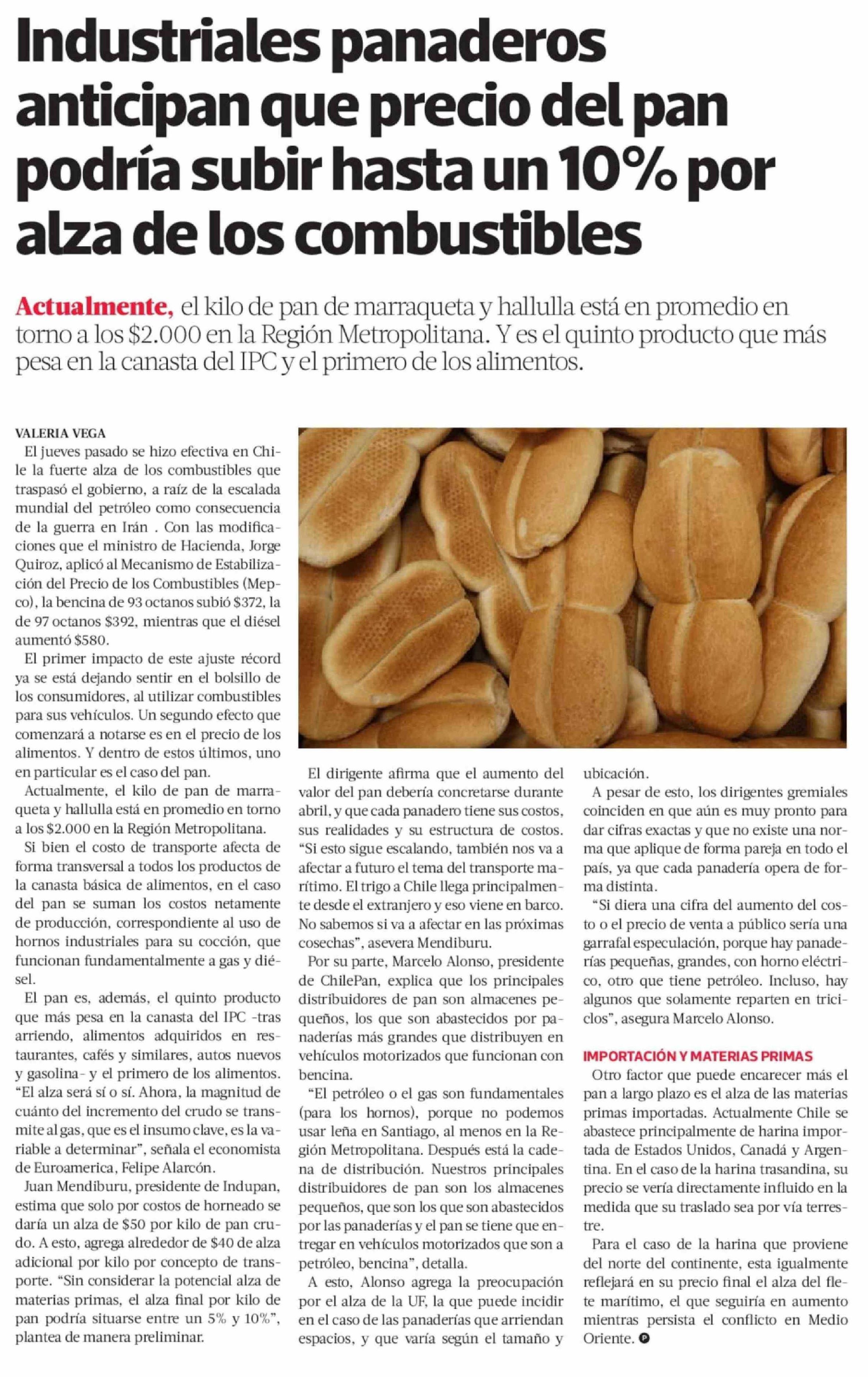 Industriales panaderos anticipan que precio del pan podría subir hasta un 10% por alza de los combustibles