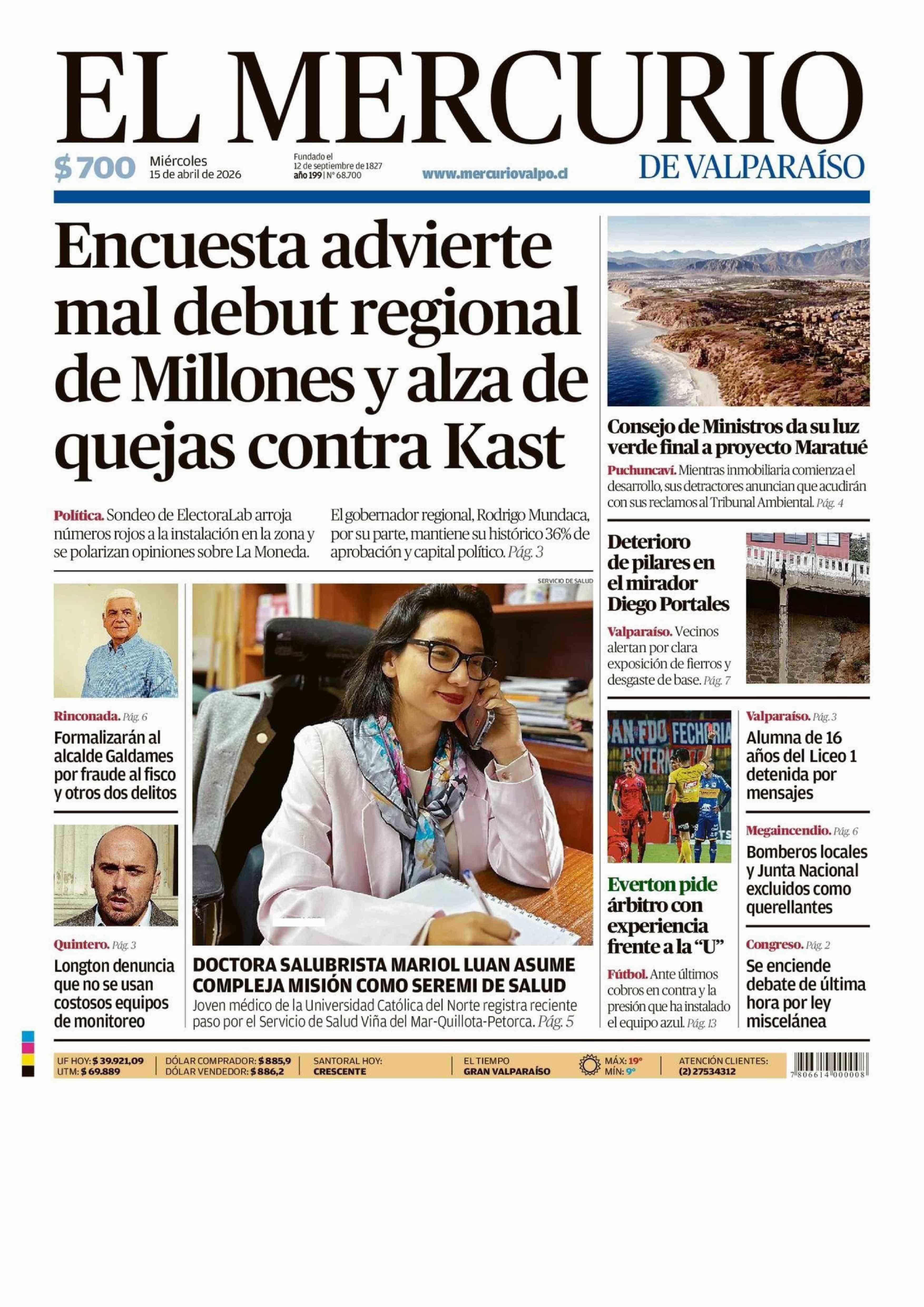 PORTADA EL MERCURIO DE VALPARAÍSO CHILE