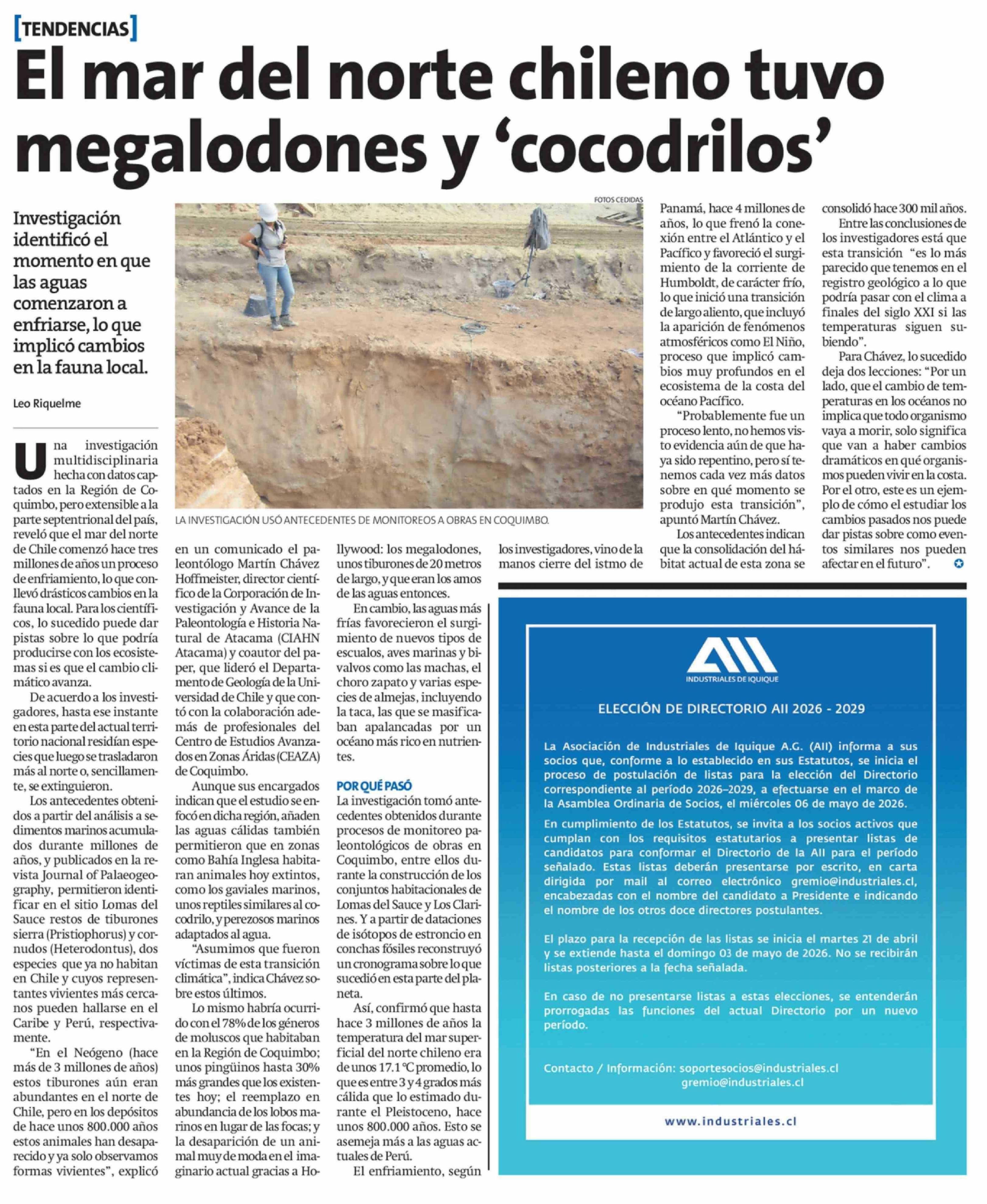El mar del norte chileno tuvo megalodones y 'cocodrilos'